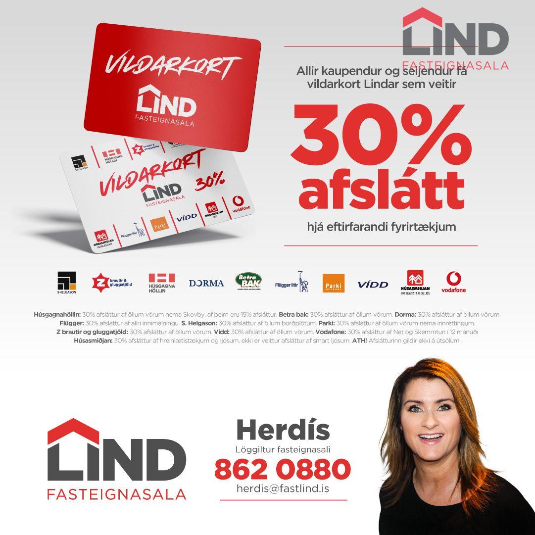 Allir kaupendur okkar fá Vildarkort Lindar. Með því að framvísa kortinu færð þú 30% afslátt hjá 10 samstarfsaðilum: Húsgagnahöllin, S. Helgason, Flugger litir, Húsasmiðjan,