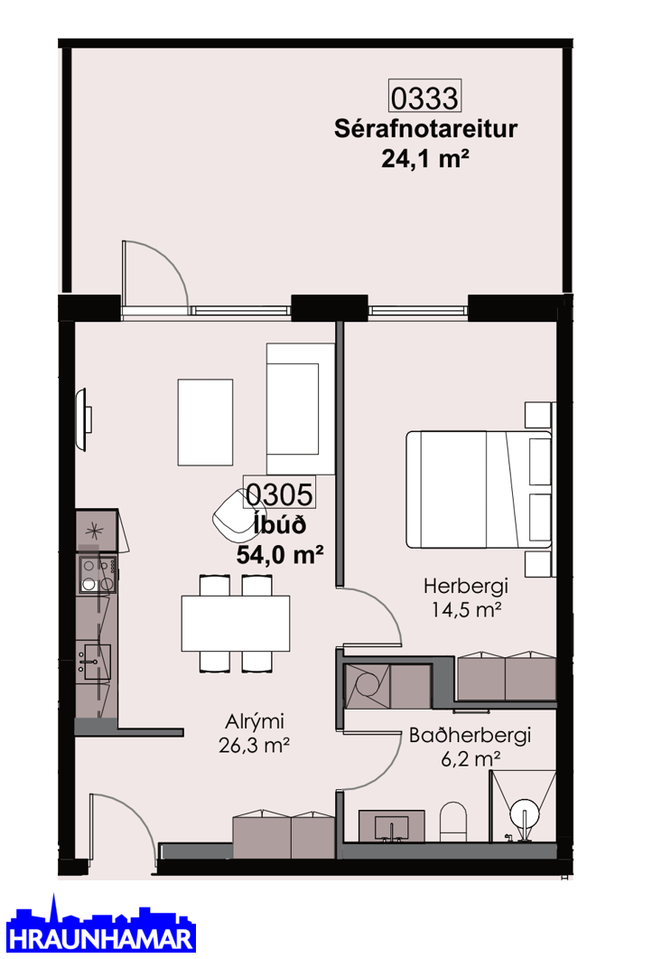 Helgi s. 893-2233, Hlynur s. 698-2603, Vala s. 791-7500, Glódís s. 659-0510, Einar s. 888-7979. Eða sendið tölvupóst á sala@hraunhamar.is Íbúð 305 er 2ja herbergja og er skáð 62,8 fm. þar af 8,8 fm geymsla.Einstakt útsýni