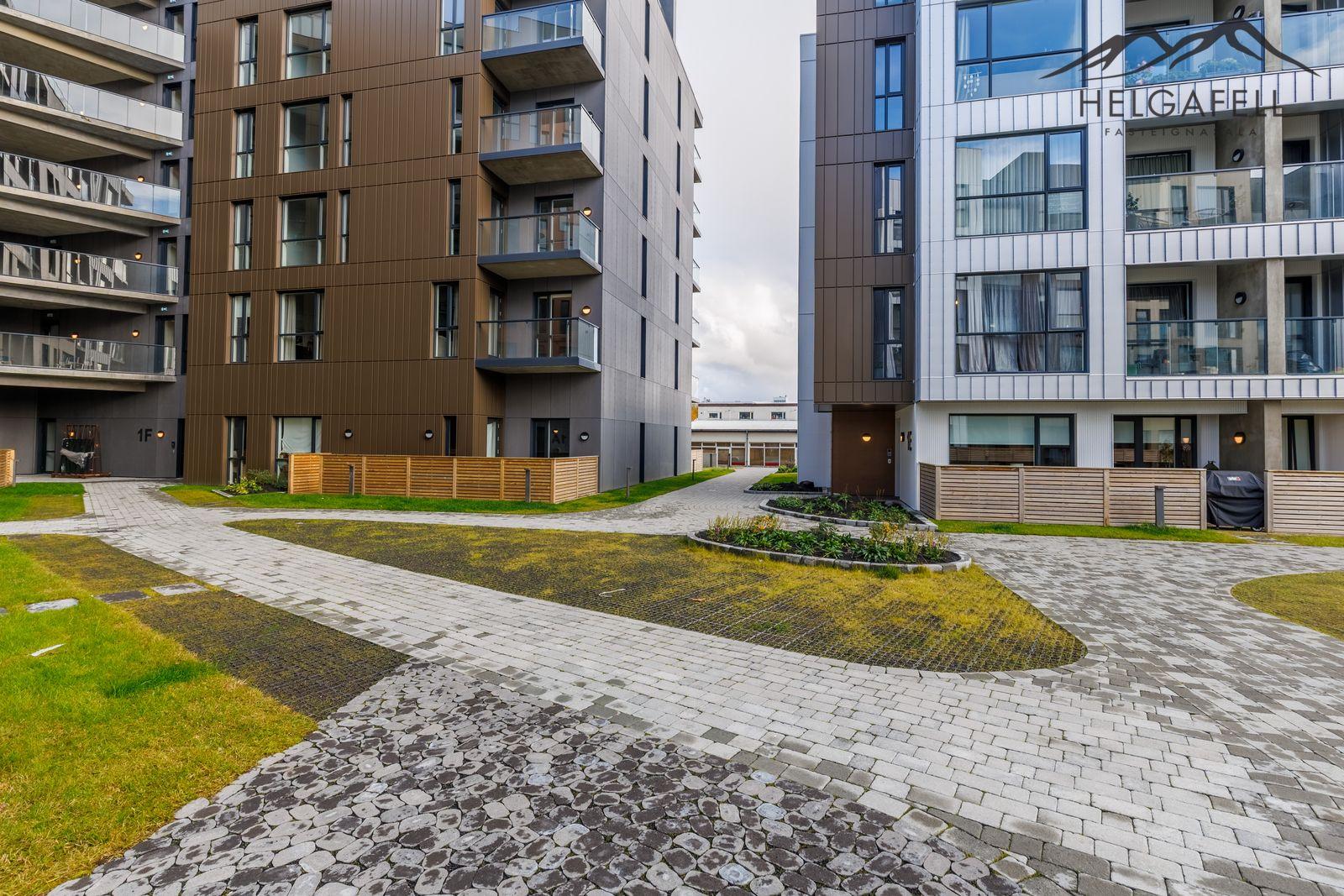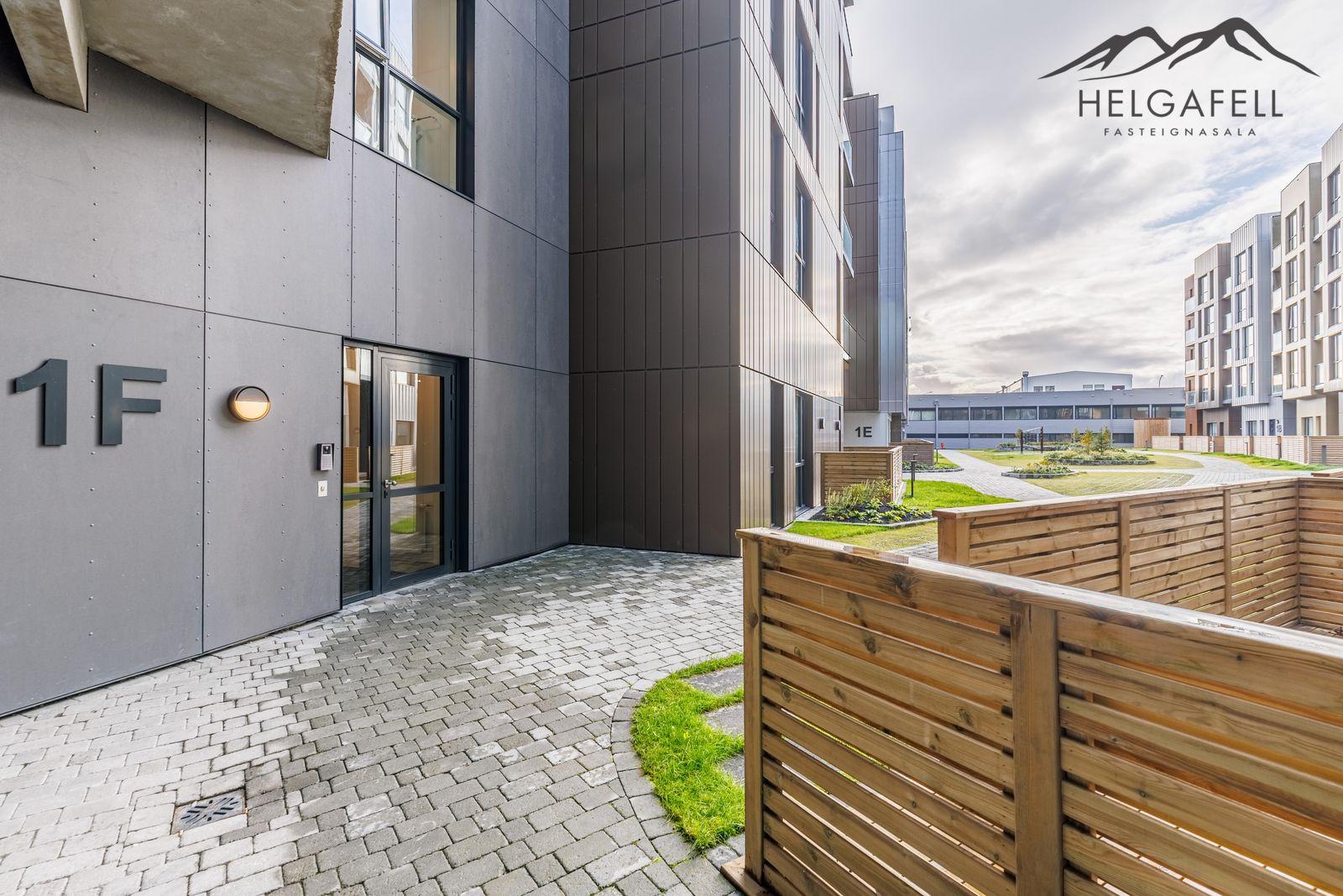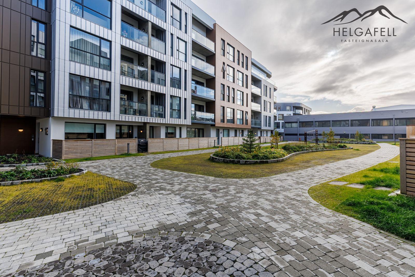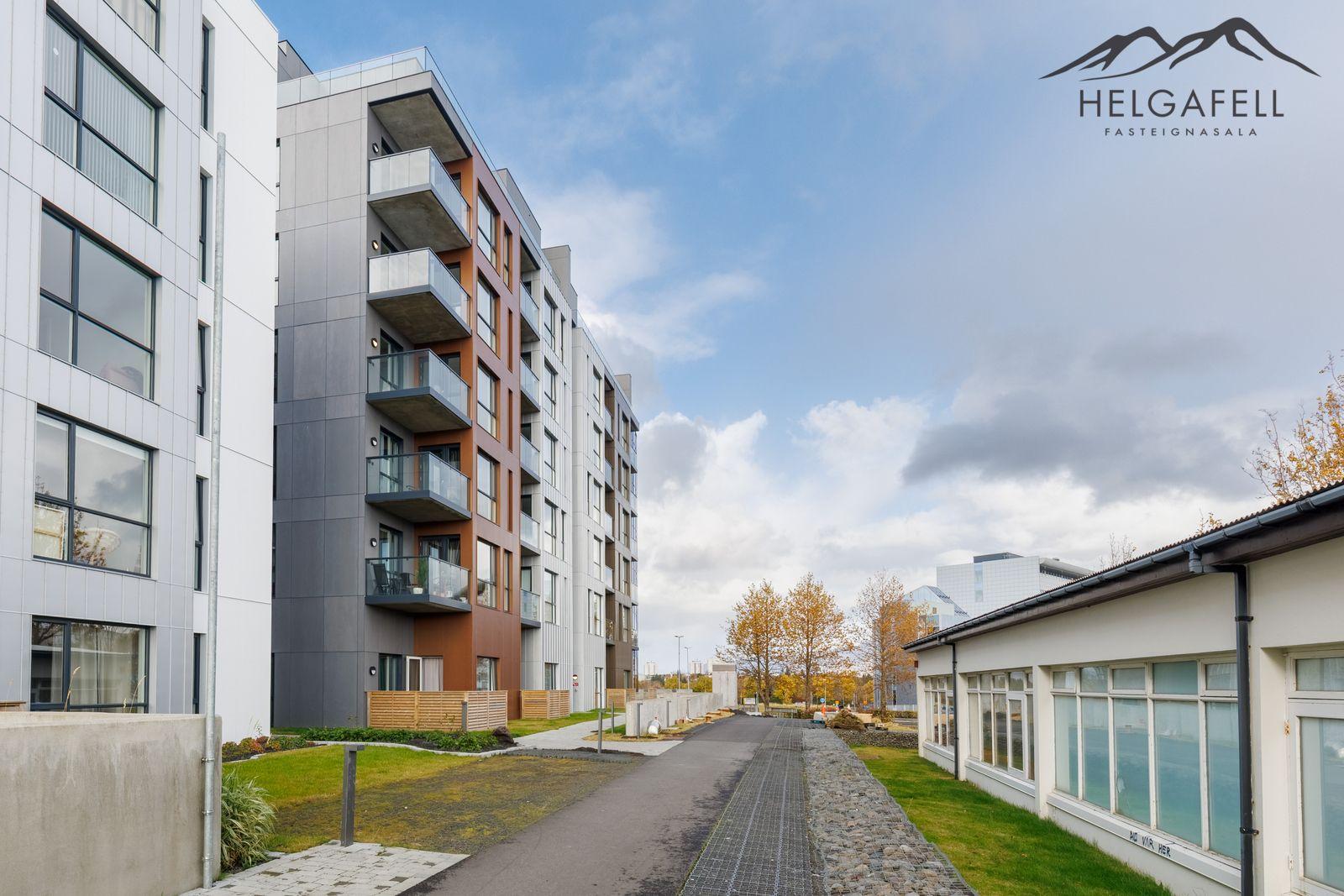 Helgafell fasteignasala, Hólmar Björn Sigþórsson löggiltur fasteignasali og Guðmundur Hjalti Sveinsson aðstoðarmaður fasteignasala kynna í einkasölu Grensásveg 1F, íbúð 404, 108 Reykjavík:Um er að ræða nýja og einstaklega glæsilega 2ja herbergja íbúð á fjórðu hæð í vönduðu 7 hæða fjölbýlishúsi. Gólfsíður gluggar með fallegu útsýni. Birt stærð eignar er 76,5 fm, þar af er íbúð 71,2 fm og sérgeymsla 5,3 fm.