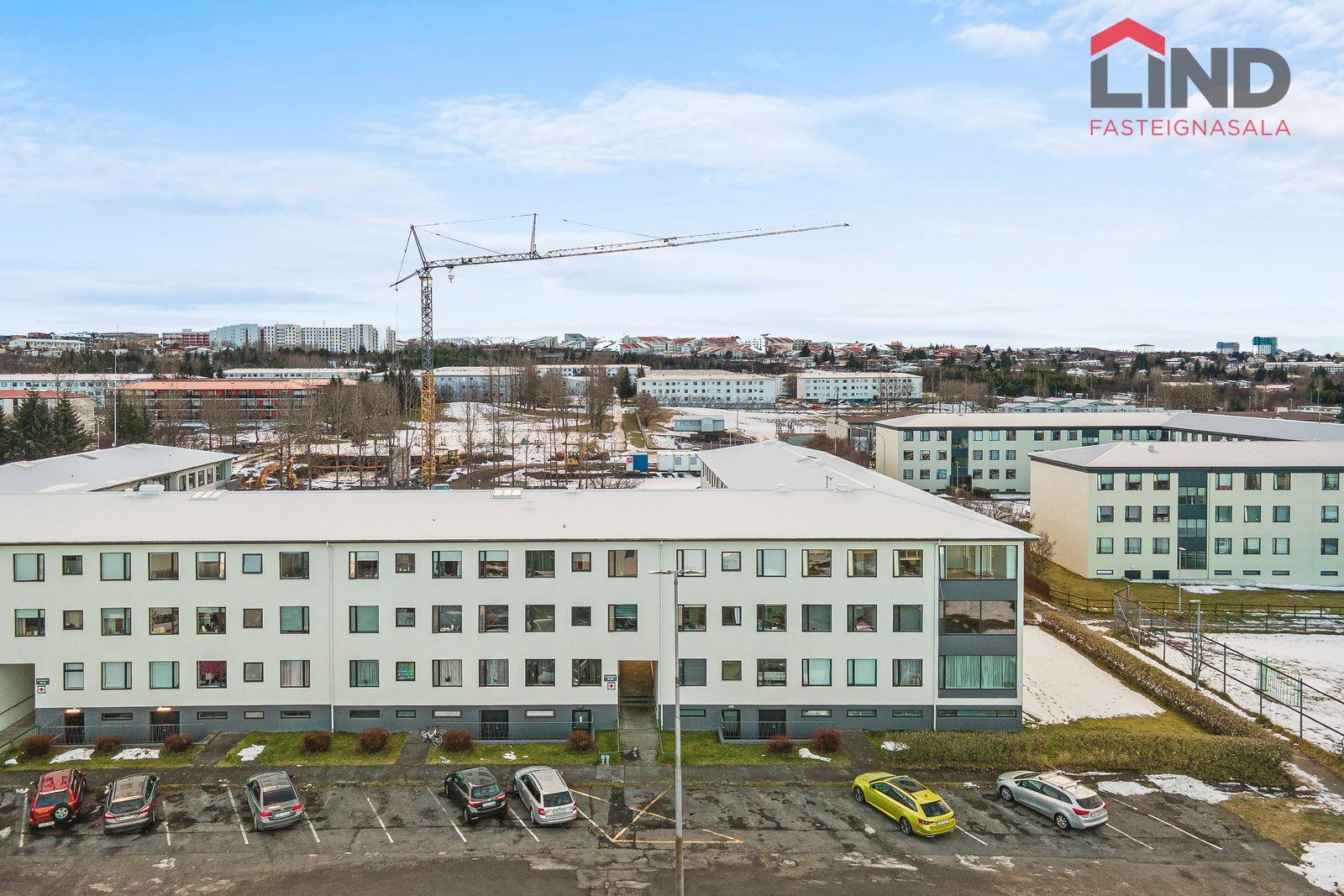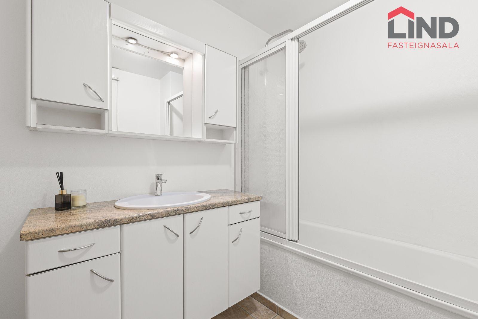 Nánari lýsing Anddyri: Rúmgóður gangur með góðum fataskáp. Baðherbergi: Hvít innrétting og baðkar með sturtuaðstöðu. Tengi er fyrir þvottavél. Eldhús: Snyrtileg innrétting með góðu borð,- og skápaplássi. Var endurnýjað 2024, nýtt helluborð, eldavél, vifta og uppþvottavél. Stofa og borðstofa: Rúmgott með parketi á gólfi. Gluggar á tvenna vegu með góðu útsýni og útgengi á rúmgóðar svalir. Hjónaherbergi: Rúmgott með parketi á gólfi og góðum fataskáp. Svefnherbergi: Með parketi á gólfi og fataskáp Barnaherbergi/ skrifstofa: Með parketi á gólfi. Útleiguherbergi er á jarðhæð hússins. 22 fm með parketi á gólfi og eldhúsinnréttingu. Geymsla: 6 fermetrar.