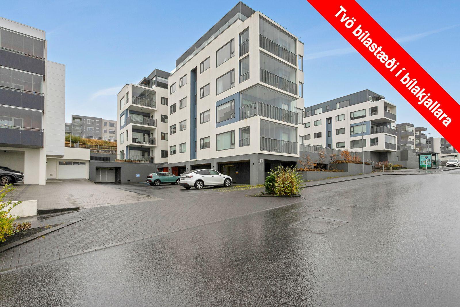 Bílastæði: Tvö bílastæði í upphitaðri bílageymslu fylgja íbúðinni.