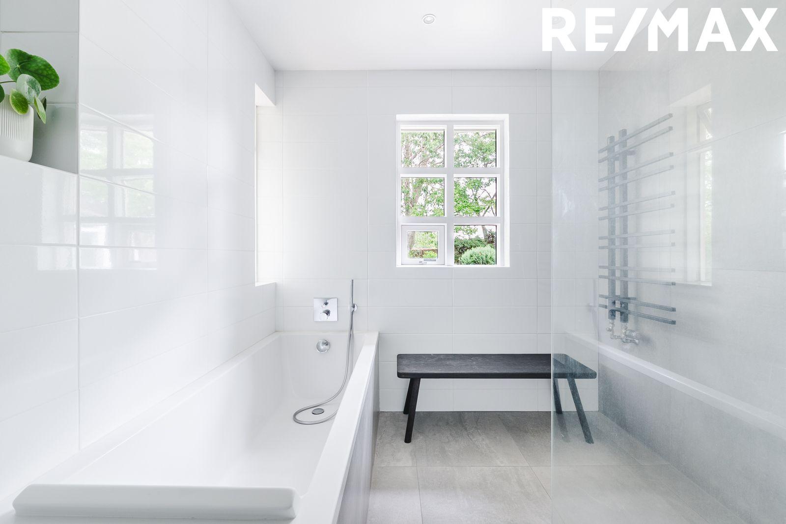Baðherbergi var endurnýjað 2016 og er flísalagt í hólf og gólf, með gólfhita. Fallegar innréttingar frá HTH. Vegghengt salerni, handlaug, sturta og baðkar.