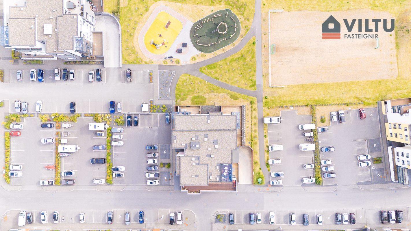 Stutt er í alla þjónustu, skóla, sund og þ.h. Fyrir utan blokkina er glæsilegt leiksvæði ásamt fótboltavelli.
