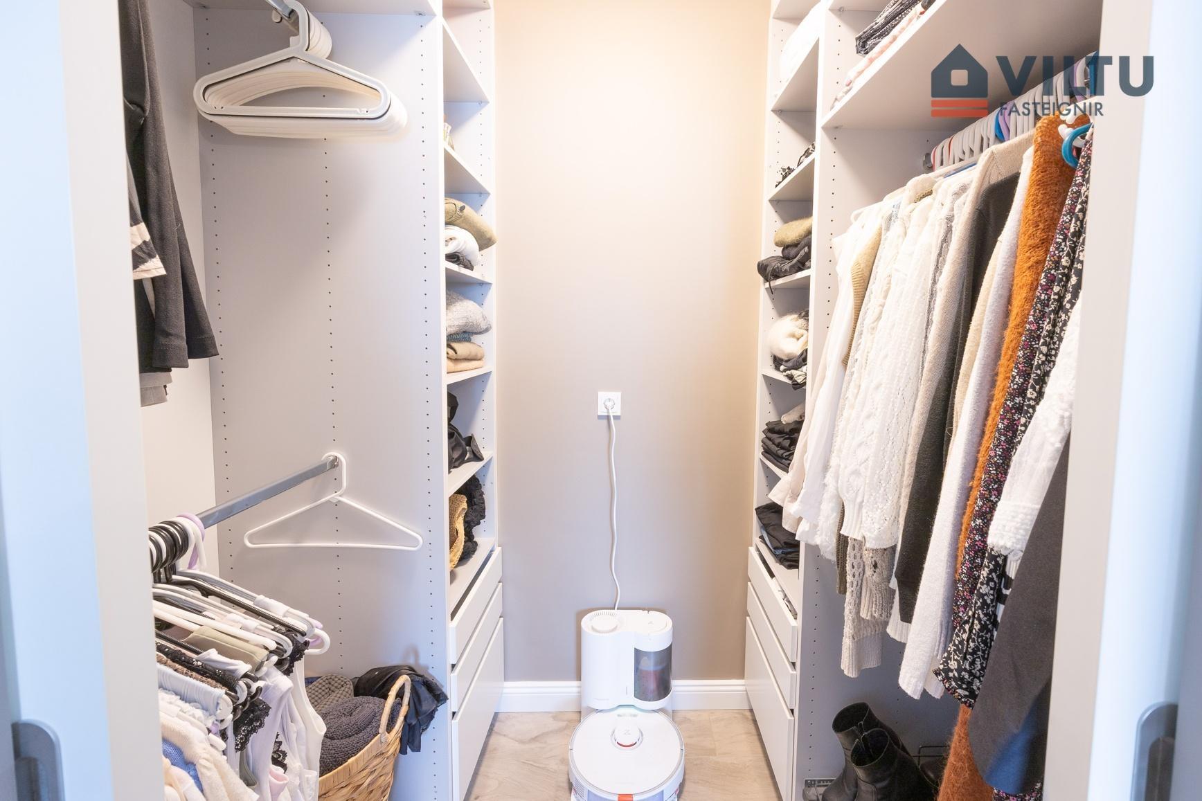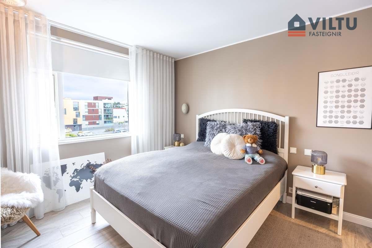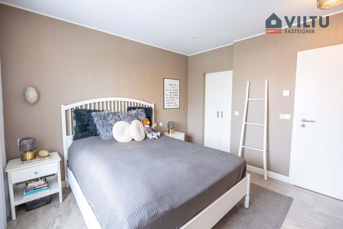 Svefnherbergin eru þrjú og eitt þeirra er rúmgott forstofuherbergi. Fataherbergi er inn af hjónaherbergi on í hinum eru rúmgóðir fataskápar.
