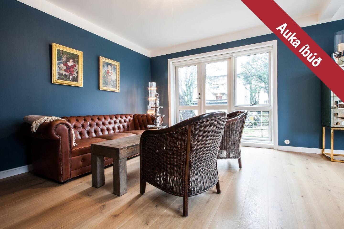 Húsið er í góðu ástandi og innréttingar; svo sem flísalögð baðherbergi í hólf og gólf, gólfefni parket og flísar, hurðarhúnar (Samuel Heath) og (retrolook) slökkvirofar-dimmerar (Berker) allt í háum gæðaflokki.