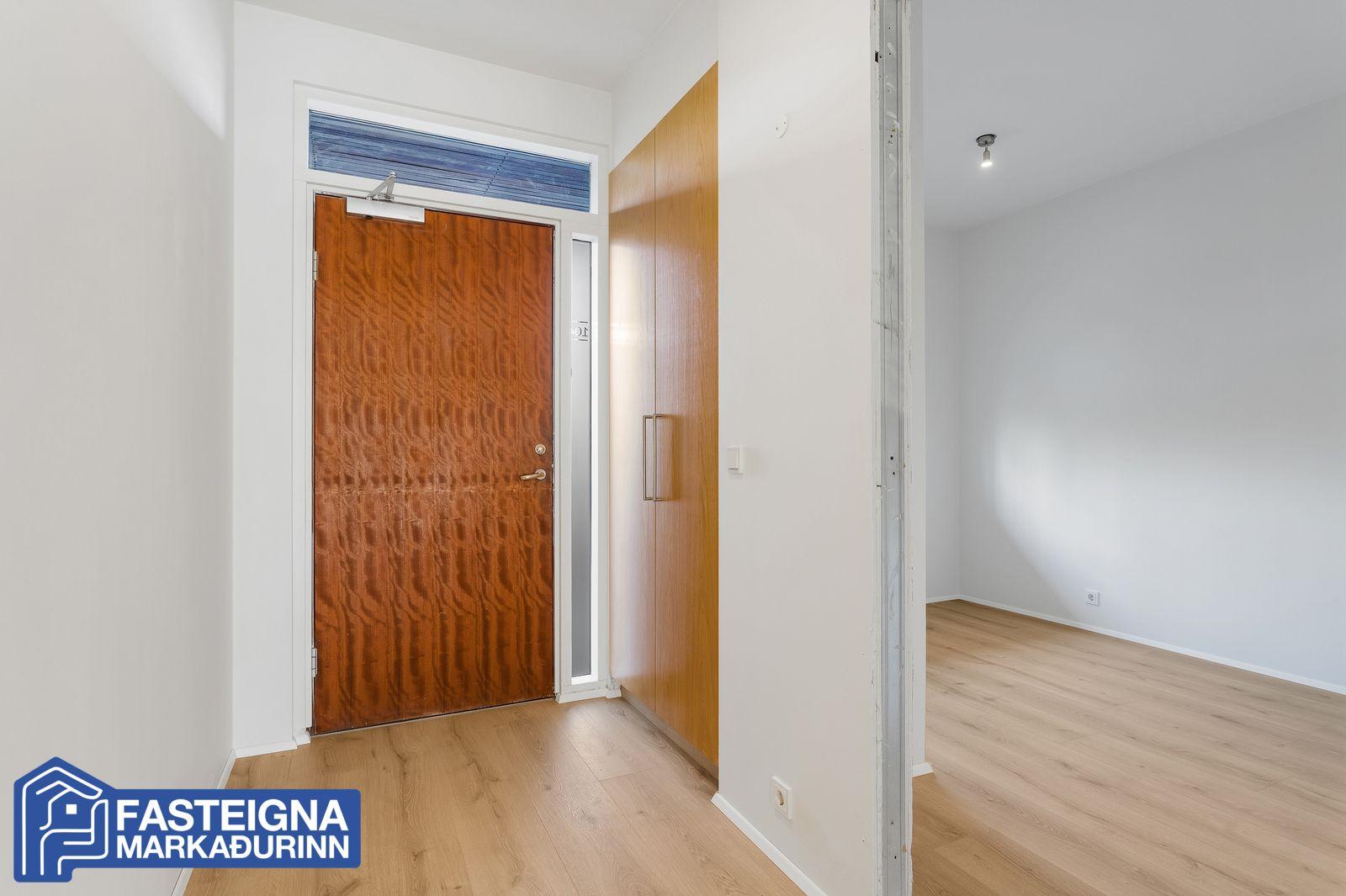 Eignin getur verið laus við kaupsamning.Lýsing eignar:Forstofa, parketlögð og rúmgóð með innbyggðum fataskápum.