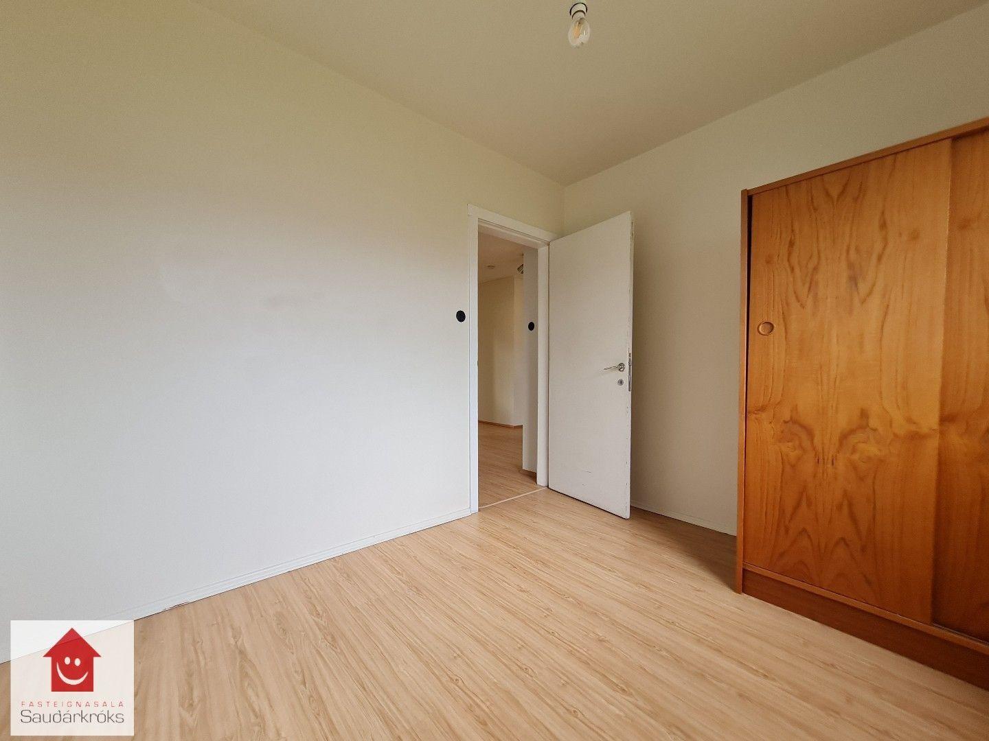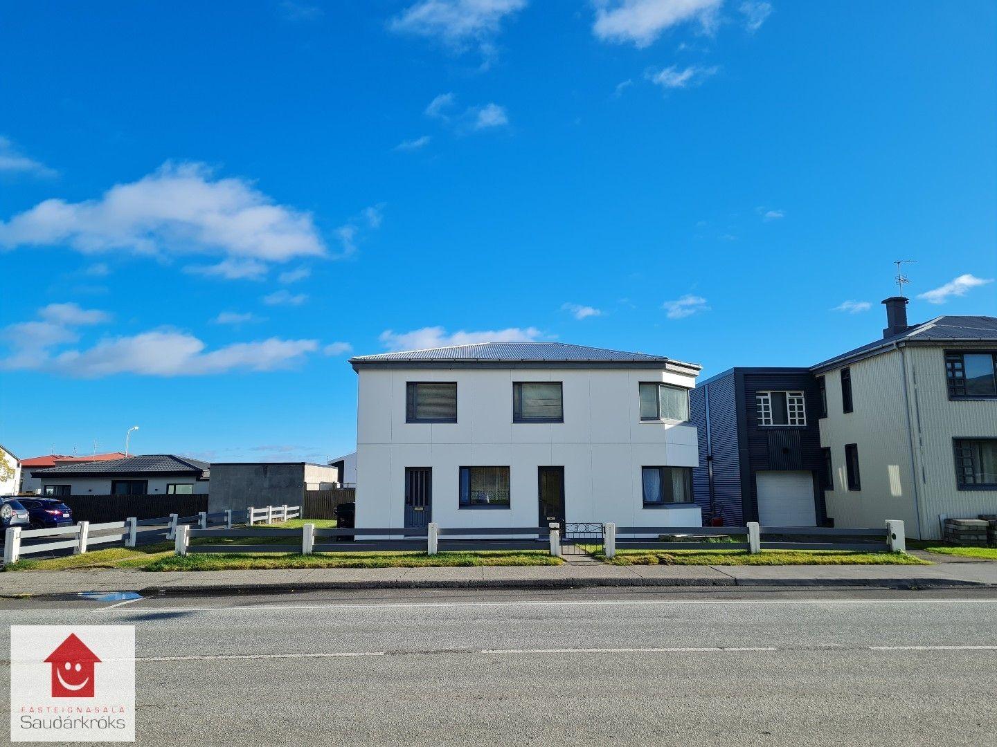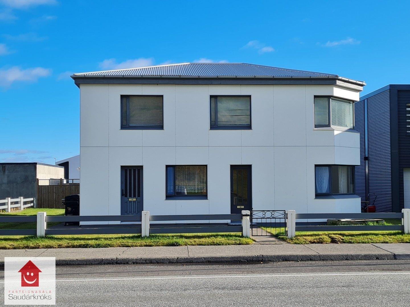 Fasteignasala Sauðárkróks býður til sölu íbúð á neðri hæð í tvíbýlishúsinu við Skagfirðingabraut 23, Sauðárkróki ásamt tilheyrandi hlutdeild í sameign og lóðarréttindum. Fjögurra herbergja íbúð í steyptu tvíbýlishúsi, byggðu árið 1948. Birt stærð íbúðarinnar skv. Þjóðskrá Íslands er 92,8 fm. Leigulóð hússins alls er 480 fm. Stutt er í skóla, íþróttasvæði, sundlaug og ýmsa þjónustu.