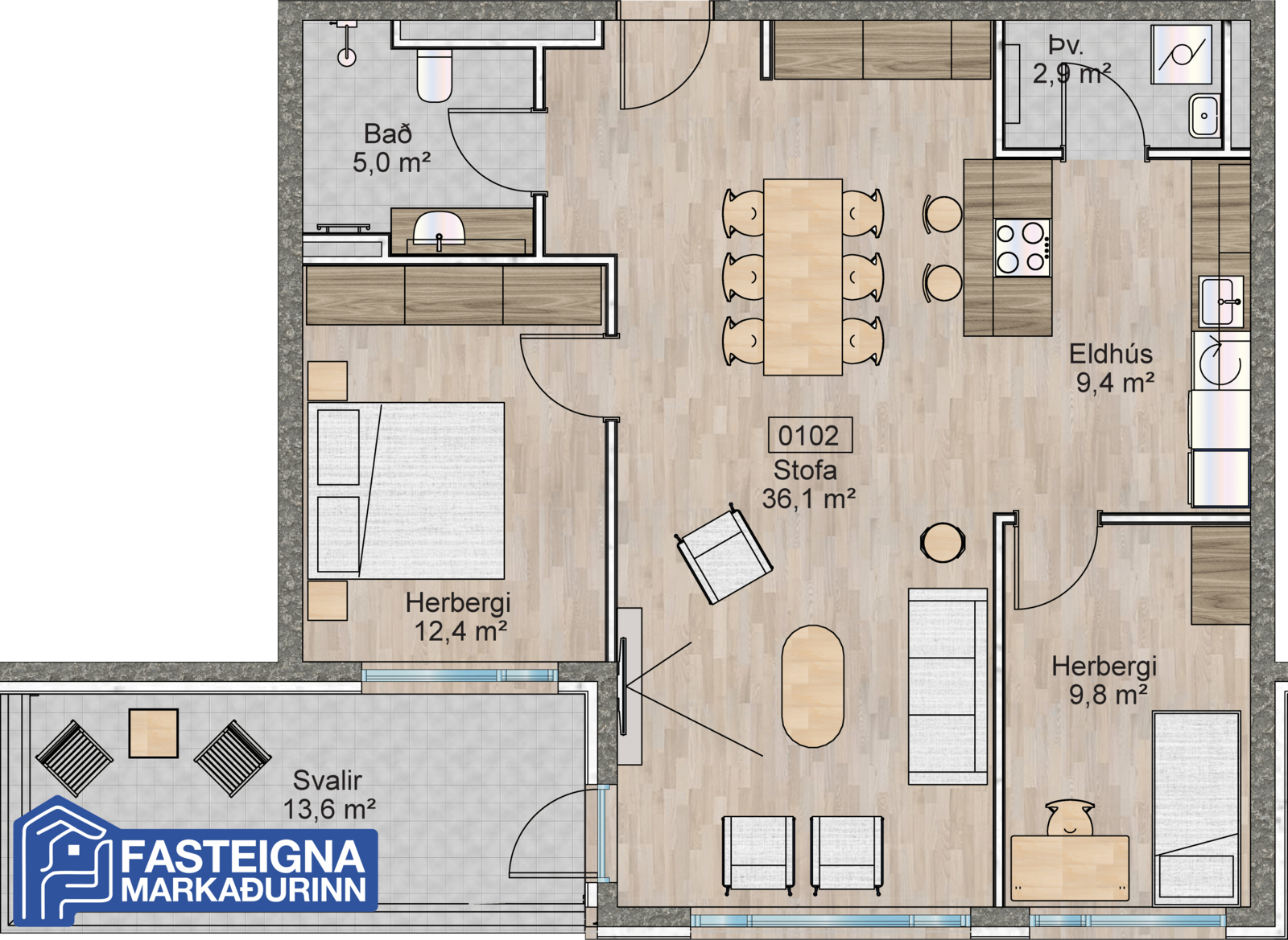 Allar nánari upplýsingar og tímapantanir á skoðun íbúða í húsinu er að fá á skrifstofu Fasteignamarkaðarins ehf. í síma 570-4500 eða á netfanginu fastmark@fastmark.is