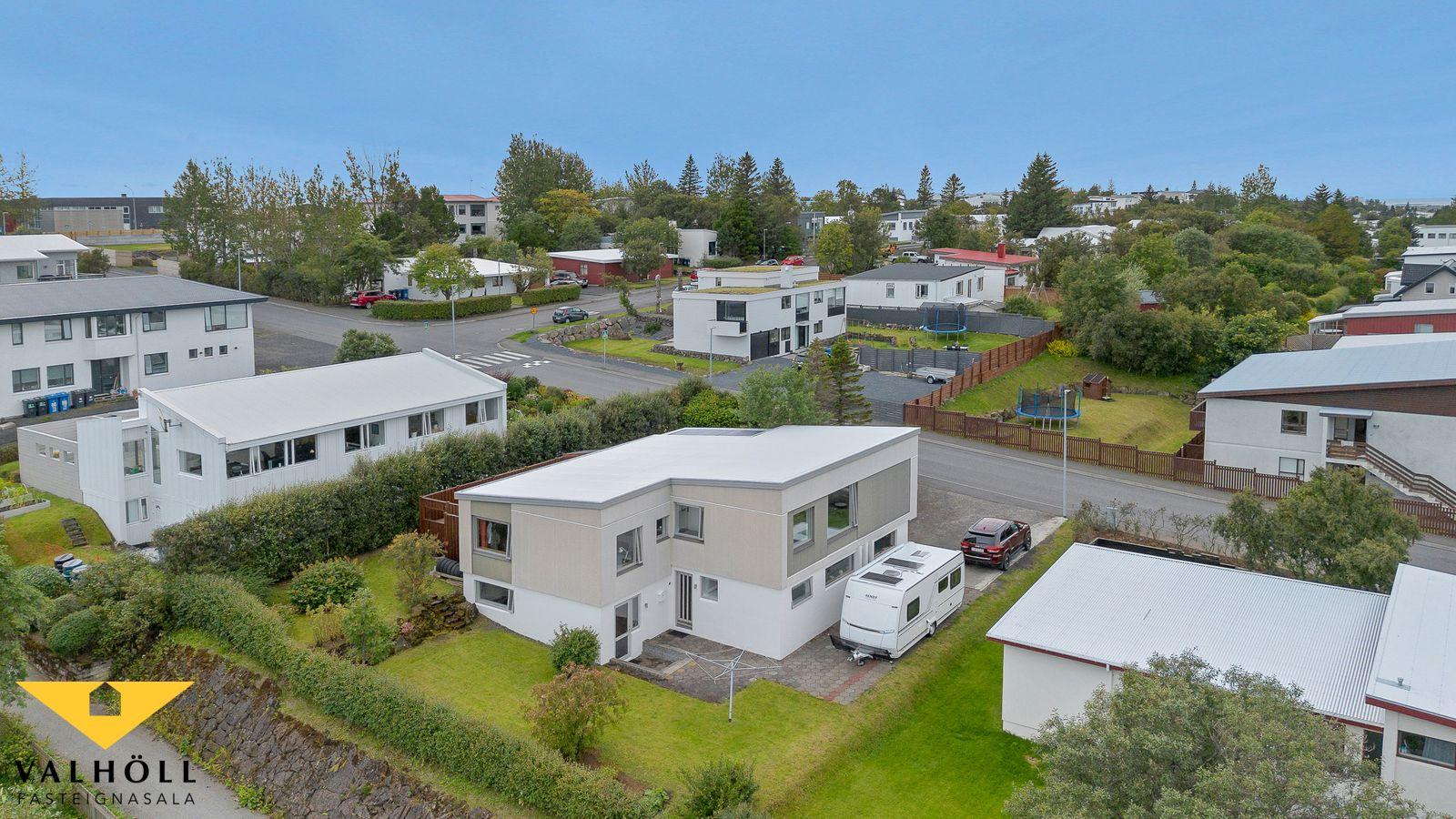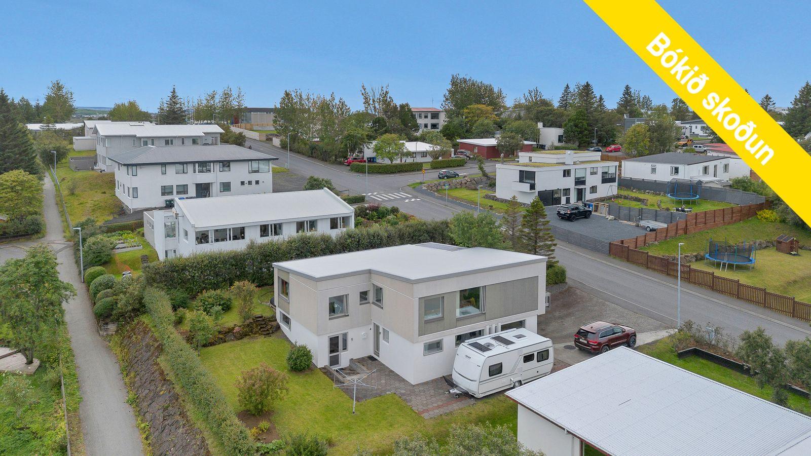 Húsið er  byggt 1978, skráð alls 264,5 fm.  Íbúðarrými 236,3 fm og bílskúr 28,2.   Sér inngangar eru inn á báðar hæðir.  Hiti er í bílastæði.  Gott hús á rólegum stað er nýtist vel fyrir  stóra fjölskyldu og með góða útleigumöguleika á neðri hæð.