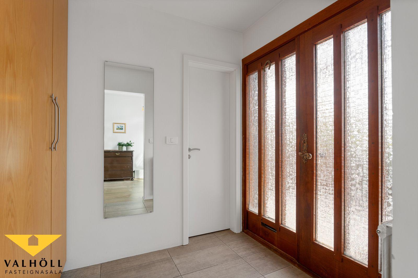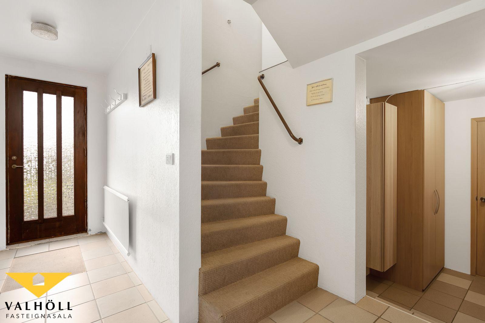 Anddyri/gangur:  Flísar á gólfum. Stigi upp á efri hæð með teppi á þrepum.