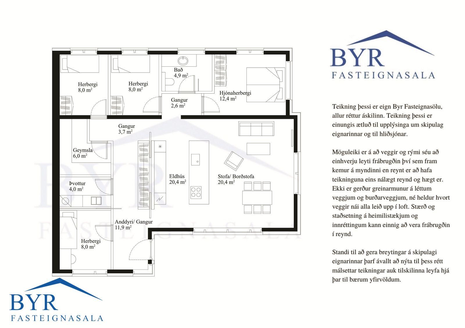 Nánari upplýsingar hjá BYR fasteignasölu | byr@byrfasteignasala.is | 483 5800 |Nánari lýsing: Anddyri/gangur, fjórfaldur fataskápur, þaðan er innangengt í alrými og á herbergisgang og í herbergi I.