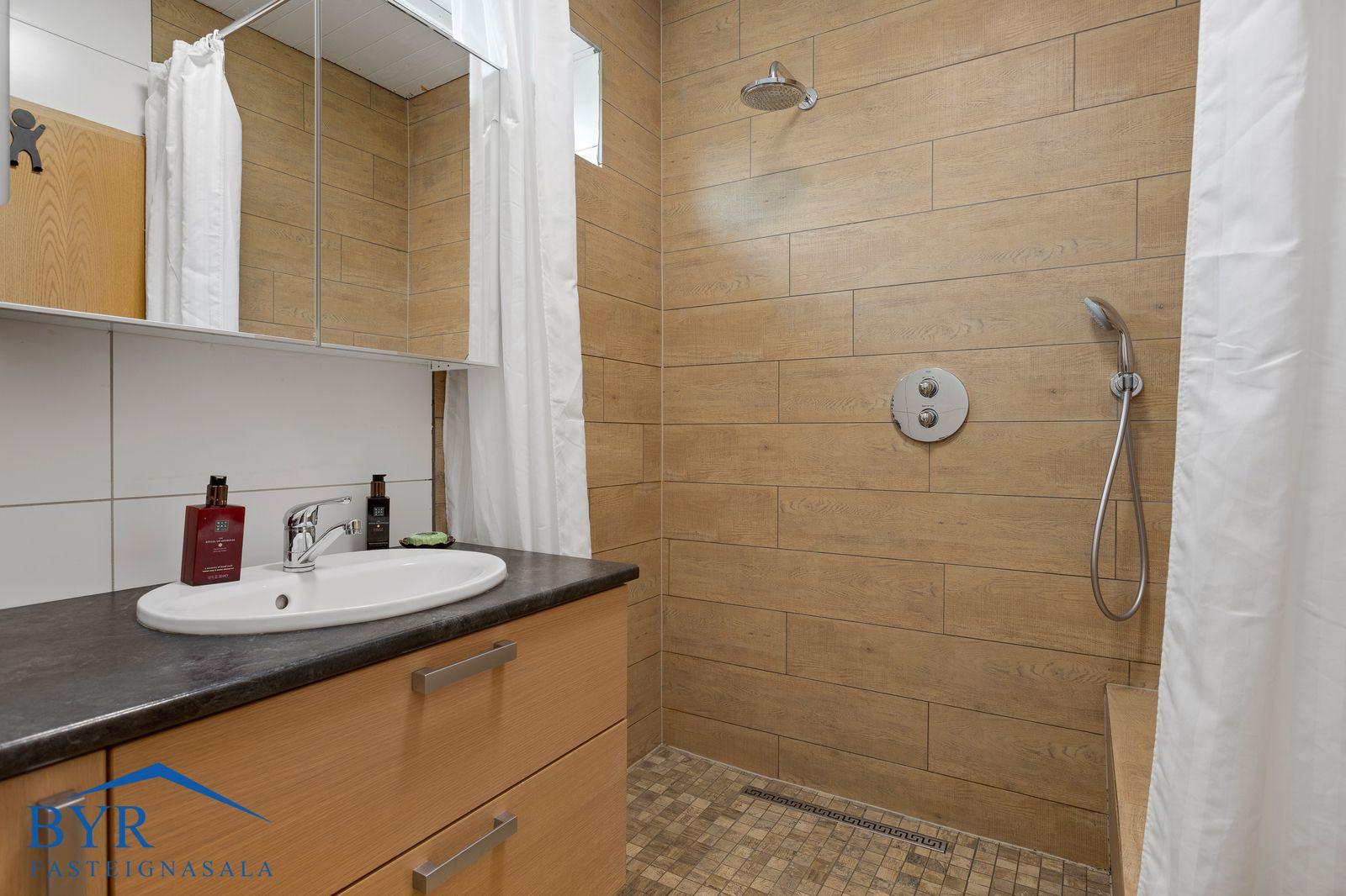 Þvotttahús, pláss fyrir tvær vélar undir borði, stálvaskur í borði, gólfhitagrind og inntak er í þvottahúsi, rafmagnstafla er í þvottahúsi.