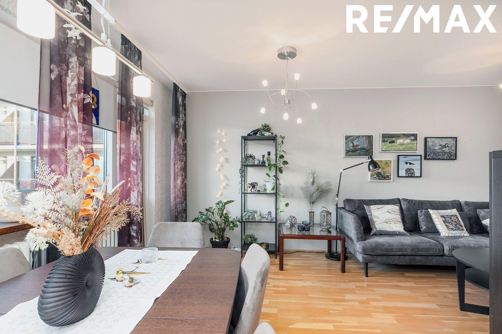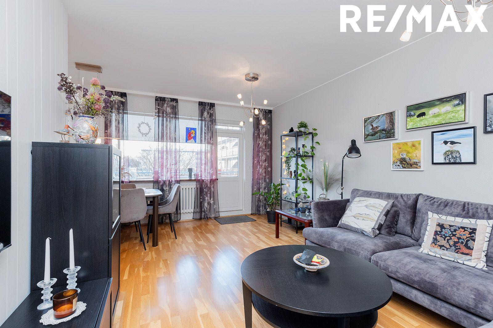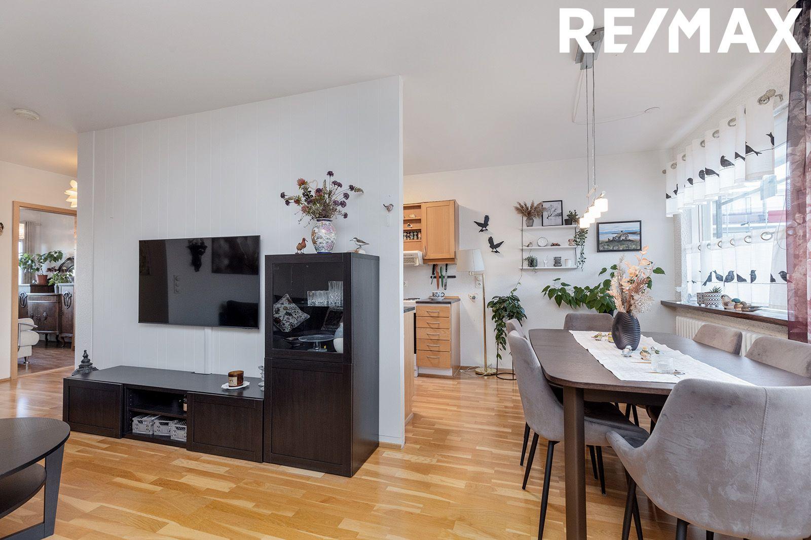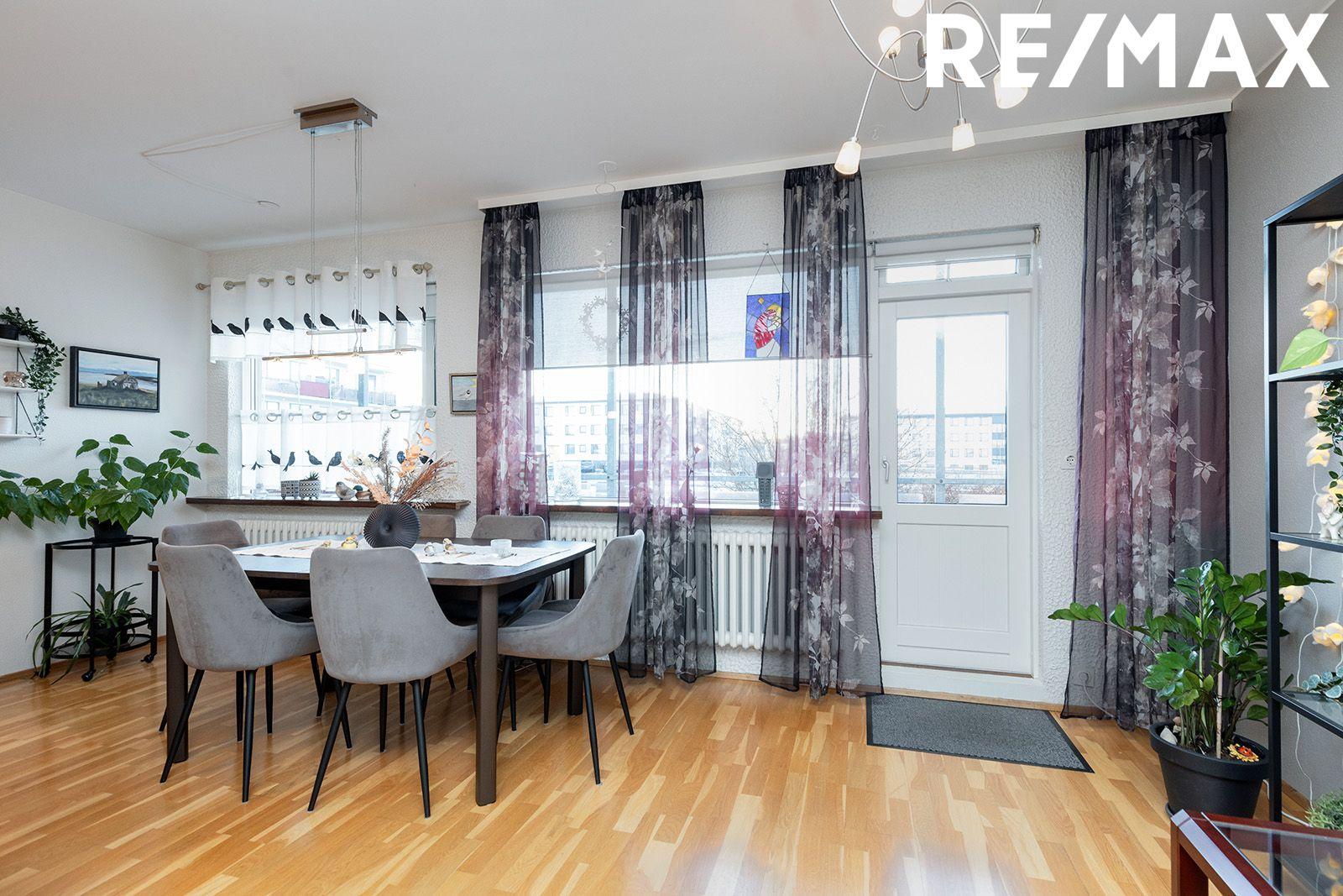 Stofan/borðstofan er björt og rúmgóð með parket á gólfi, útgengt á suður svalir.