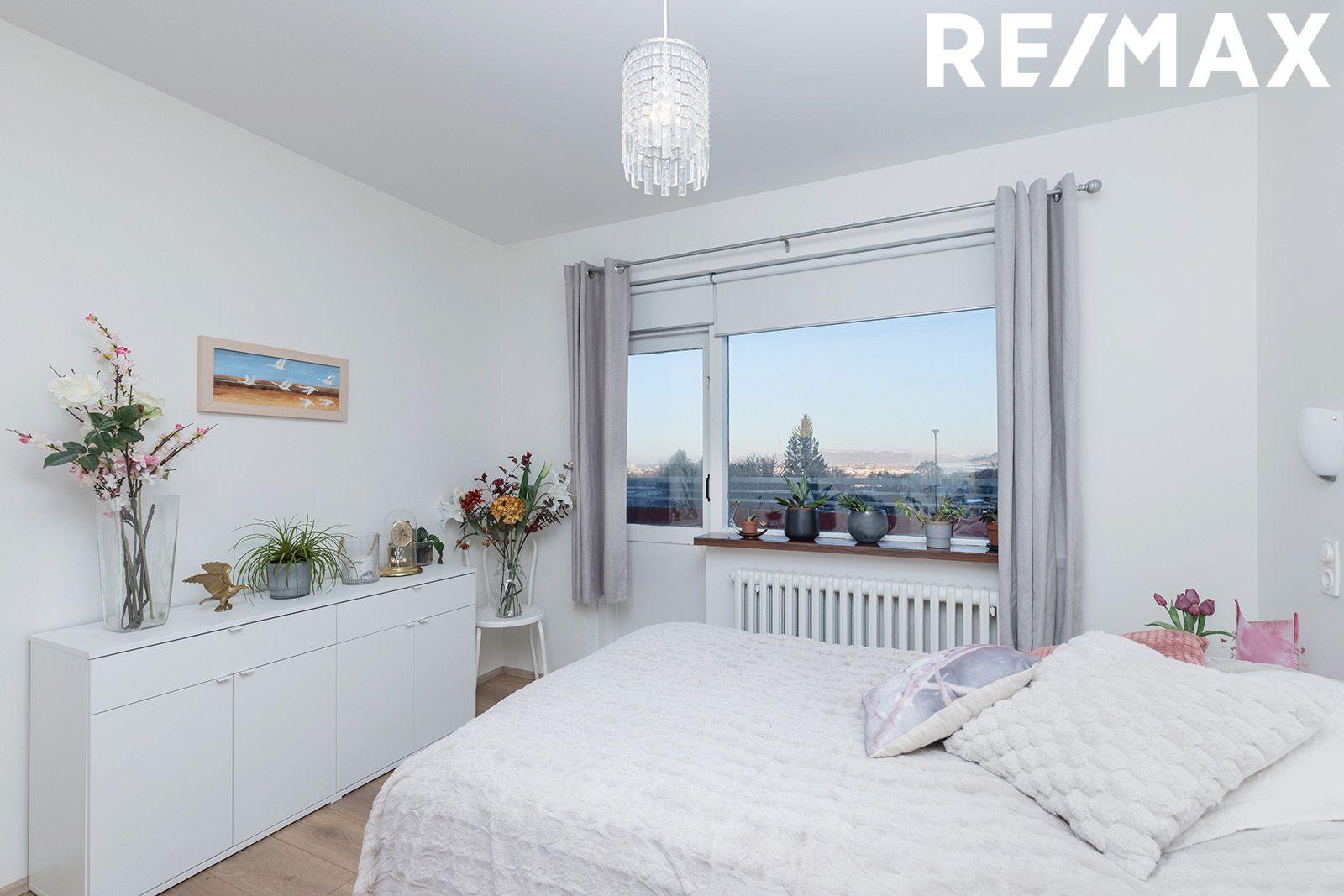 Hjónaherbergi er rúmgott með góðum fataskáp, nýtt parket á gólfi, útgengt á norður svalir.