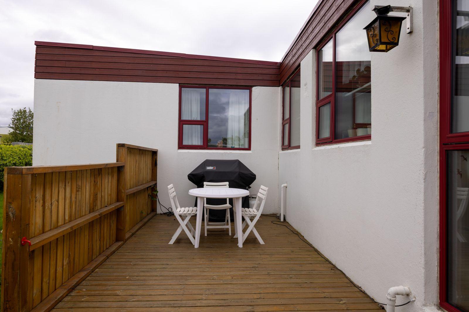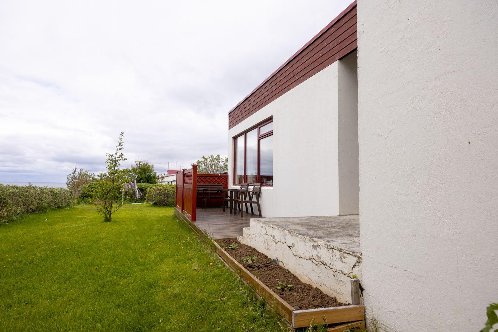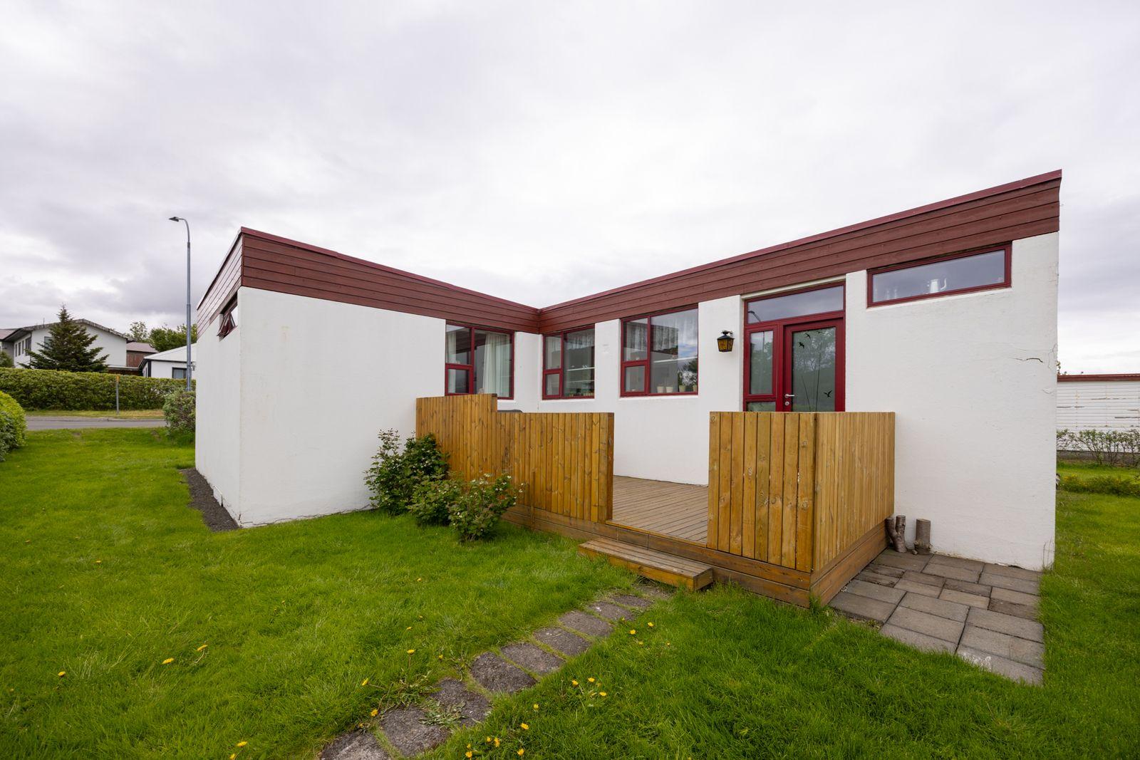Nánari lýsing: Gengið er í forstofu, þar innaf er hol, úr holi er gengið í svefnherbergisálmu, eldhús og stofu. Gengt er úr holi út á baklóð. Þar er steypt stétt og sólpallur. Úr eldhúsi gengið í þvottahús og geymsla þar innaf. Gengið er úr þvotthúsi út á sólpall með skjólveggjum.
