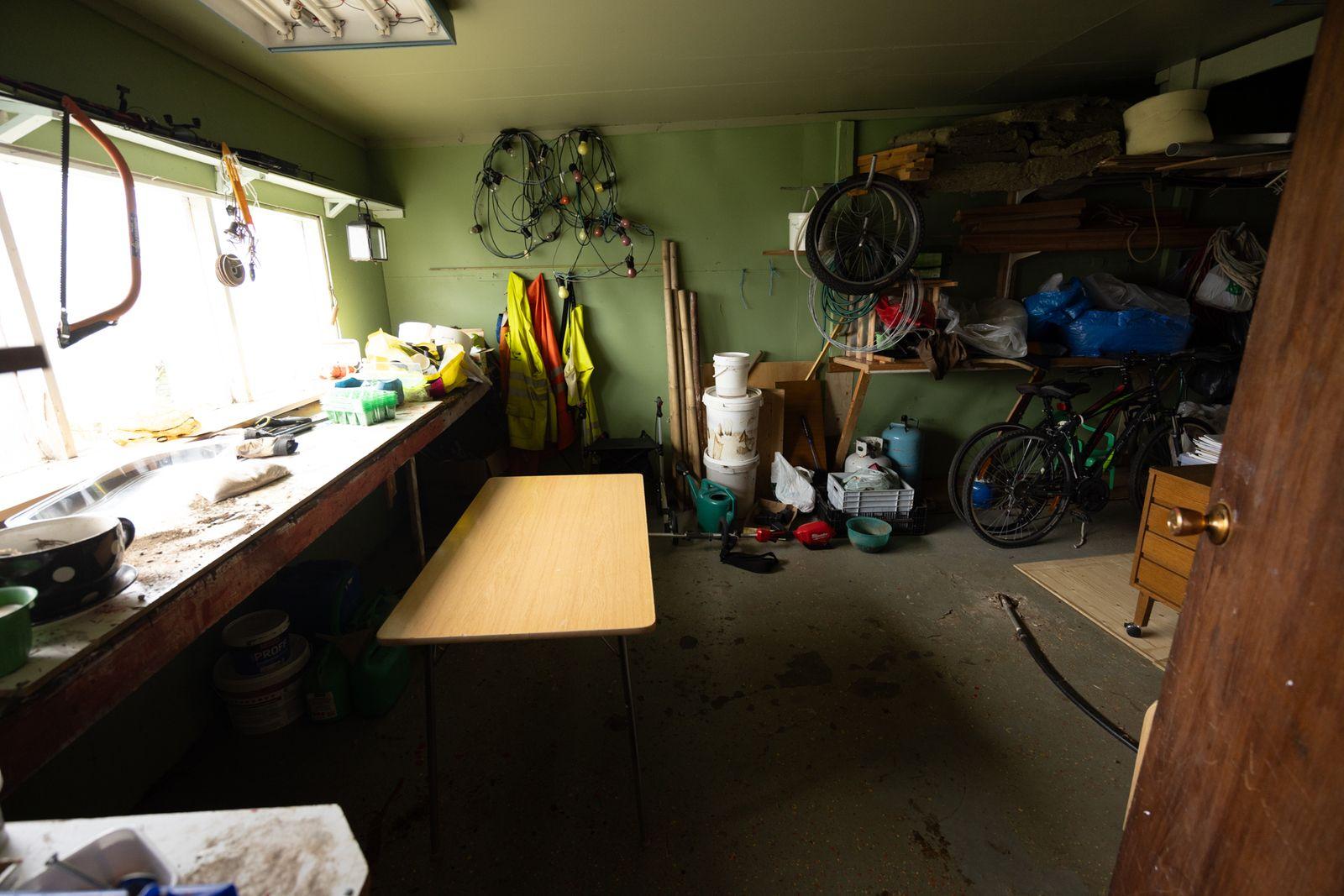 Bílskúr stakstæður en í sameign með húsinu við hliðina að Brekkuhvammi 4. Eignarhlutur Lækjarhvamms 2 er 2/3 af heild. Timburhús klætt með lituðu járni. Einangraður og epoxy málning á gólfum. Bílskúrnum er skipt niður í 3 hólf.