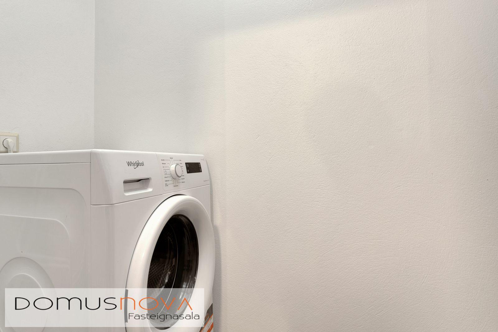 Þvottahús – Tengi og rými fyrir þvottavél og þurkara. Flísar á gólfi sem voru málaðar 2025.