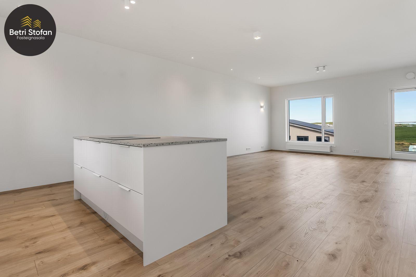 Stofa/alrými er með harðparketi á gólfi, útgengt út á svalir sem snúa til suð-vesturs með útsýni.