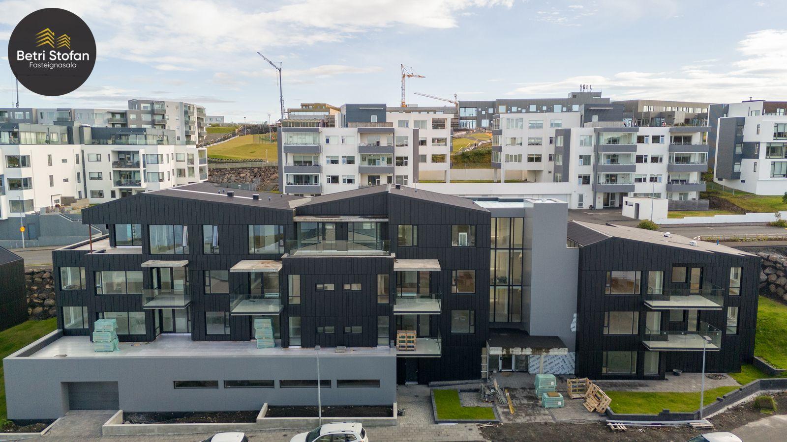 Hraungata 7. Er stórglæsilegt og einstaklega flott hannað fjórbýli á fjórum hæðum með 10 íbúðum.