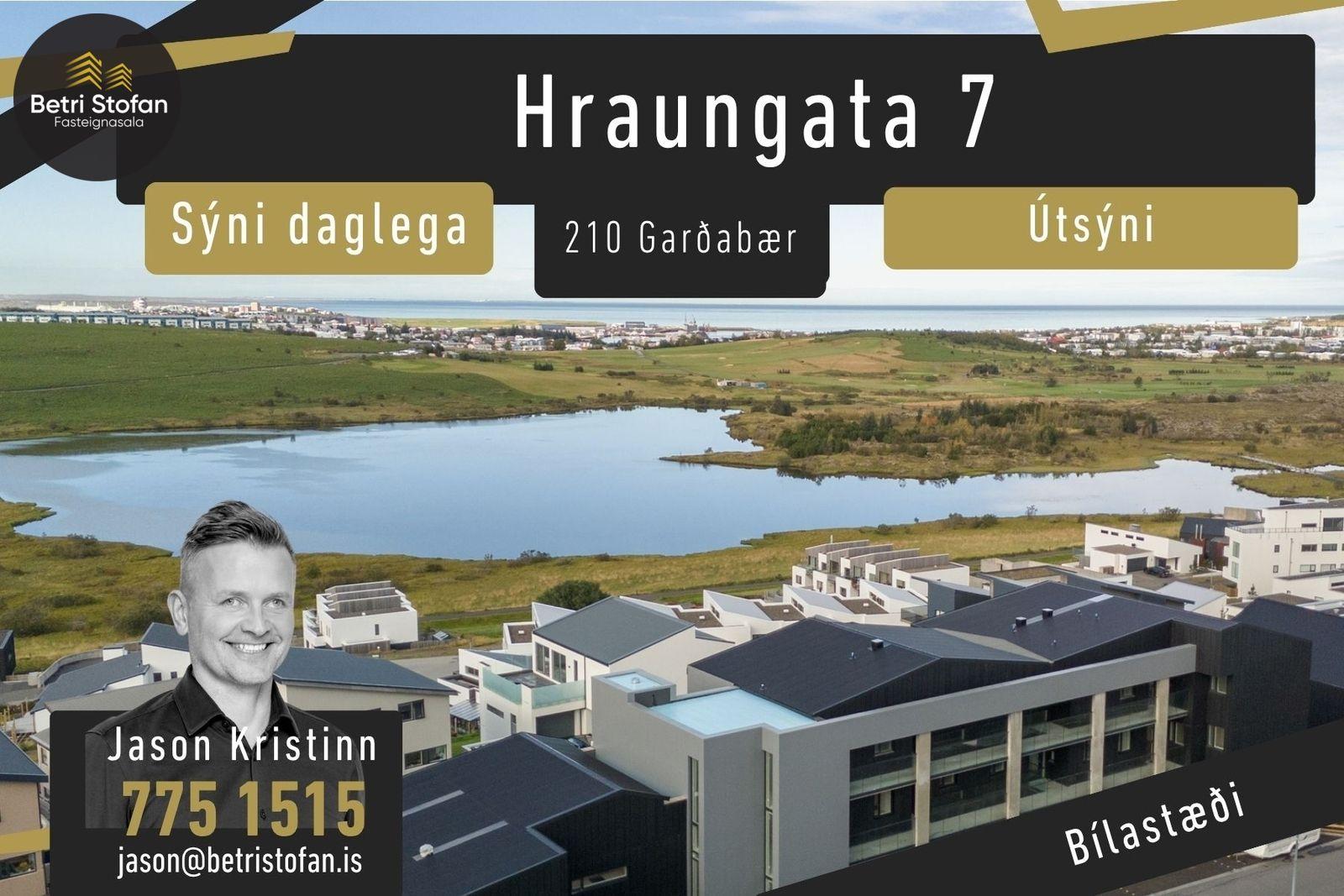 Betri Stofan og Jason Kristinn Ólafsson, sími 7751515 jason@betristofan.is kynna. Hraungata 7, íbúð 302, sem er nýbygging og er á næstu 5-6 vikum laus til afhendingar. Glæsilegar íbúðir með stæði í bílageymslu (B11). Útsýni. Fullbúnar íbúðir. Góð lofthæð. Innréttingar eru frá JKE í hvítu og tæki frá Ormsson, AEG. Ljós eru innbyggð að hluta, kubbaljós, ljósakúplar. Baðherbergi eru flísalögð, bæði veggir og gólf. Afhending er október - nóvember 2025