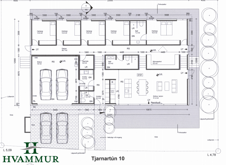 Einbýli með bílskúr við Tjarnartún 10 á Svalbarðseyri - samtals 264,0 m² að stærð.