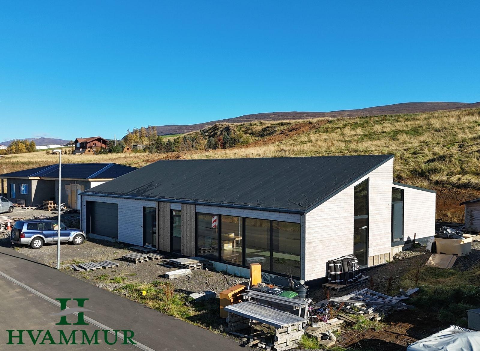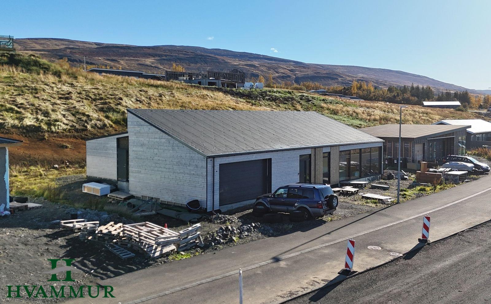 Eignin er 5-6 herbergja einbýli á tveimur pöllum með innbyggðum bílskúr, úr krosslímdum timbureiningum frá BYKO á steyptum grunni, skráð samtals 264 m² að stærð. Lóðin er leigulóð í eigu Svalbarðsstrandarhrepps, skráð 893,0 m² að stærð. Húsið er í dag skráð á byggingarstig B3 og matsstig 5, tilbúið til innréttinga. Að utan er húsið að mestu frágengið, klætt með bárustáli og viðarklæðningu en lóðarfrágangur er alveg eftir, þó er búið að hafa jarðvegsskipti.