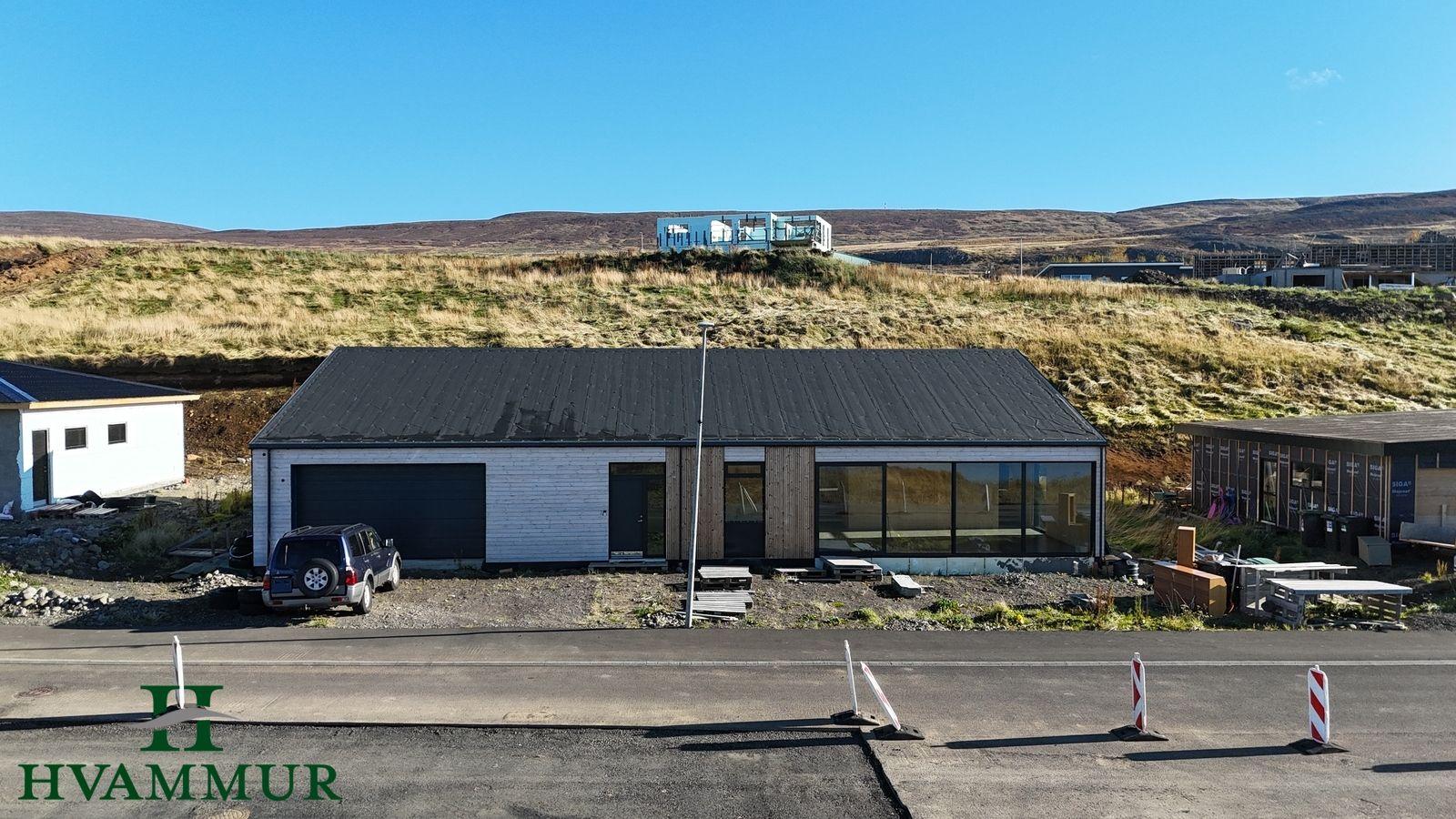 Annað - Búið er að leggja tvö lög af pappa á þakið sem og einangrun en síðasta pappalagið vantar. - Mikil lofthæð er í húsinu og allir gluggar ýmist gólfsíðir eða uppí mæni. - Ljósleiðari er kominn inn og tengdur. - Varmaskiptir er á vatninu. - Vel staðsett lóð, austast í hverfinu með óskert útsýni út á sjó. - Eignin getur verið laus til afhendingar við kaupsamning.