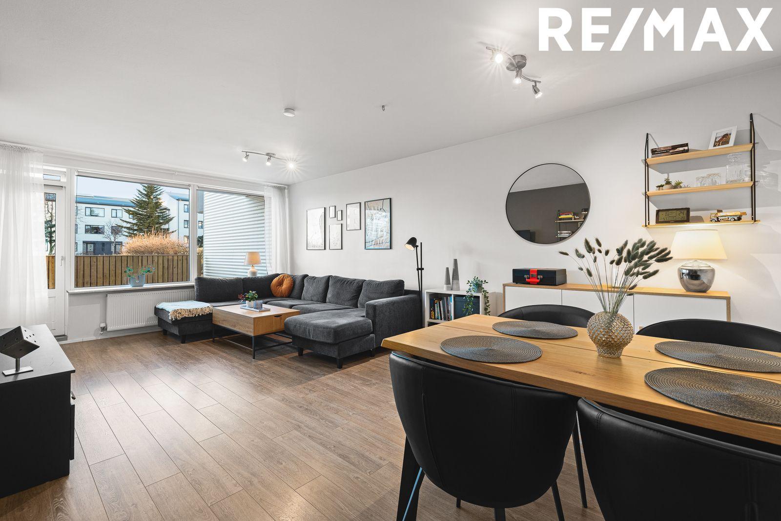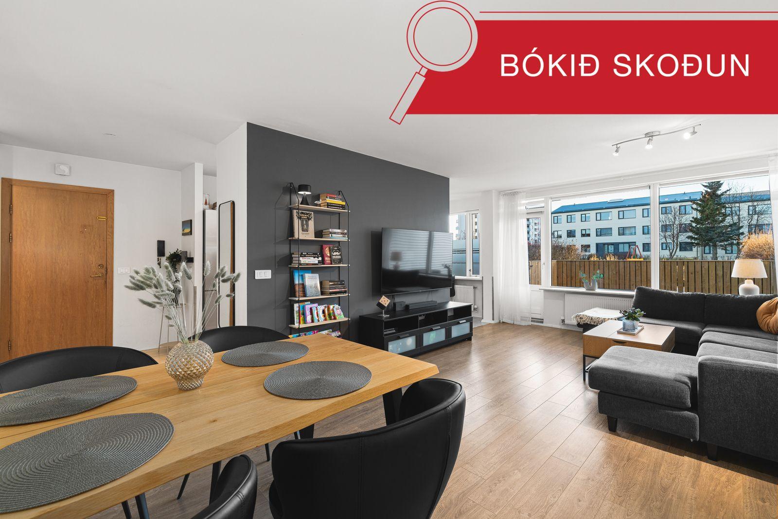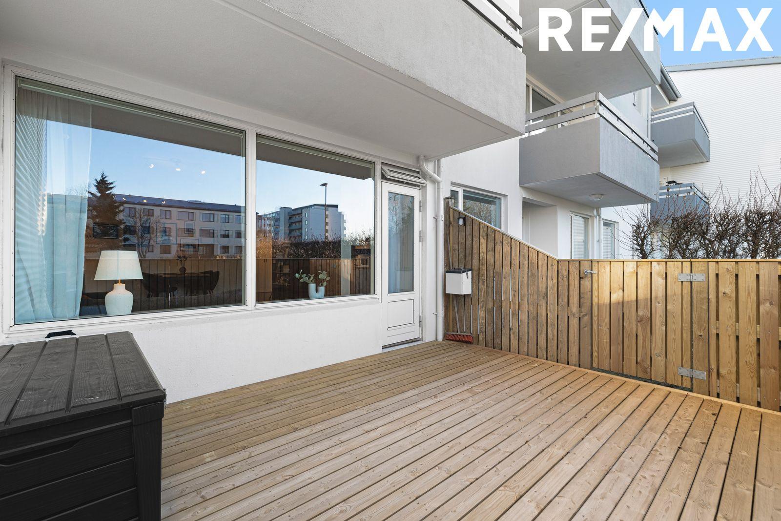 Björt og vel skipulögð 3ja herbergja íbúð á jarðhæð með nýlegri skjólgóðri viðarverönd til vesturs. Þetta er eina íbúðin á hæðinni.Uppgefin heildarstærð hjá HMS er 83,3 m2 en geymslan virðist vera utan skráningar en í eignaskiptasamningi sem er með uppgefna stærð 89 fm, og geymslan þá 5,7 fm. Húsið er álklætt á suður- og austurhlið, þakklæðning endurnýjuð, sem og svalir endurnýjaðar og allir gluggar og svalahurð íbúðar. Íbúðin hefur verið þónokkuð uppgerð, m.a. eldhús, gólfefni og skápar auk þess innréttingar á baðherbergi. Innra skipulagi hefur verið lítillega breytt frá samþykktum teikningum með betri nýtingu í huga.  Næg bílastæði eru á lóðinni við annan innganginn og framan við hinn er gott gróið leiksvæði. Út frá stofu er ný viðarverönd og þar fyrir framan grasblettur með trjágróðri í sameign. Skemmtileg eign með góðri nýtingu fermetra í barnvænu hverfi. Í nærumhverfi er Hólagarður verslunarkjarni, leikskóli, Hólabrekkuskóli og Fjölbrautaskólinn í Breiðholti auk þess sem stutt ganga er í náttúruparadísina í Elliðaárdal. Fasteignamat 2026 verður 58.700.000 kr.