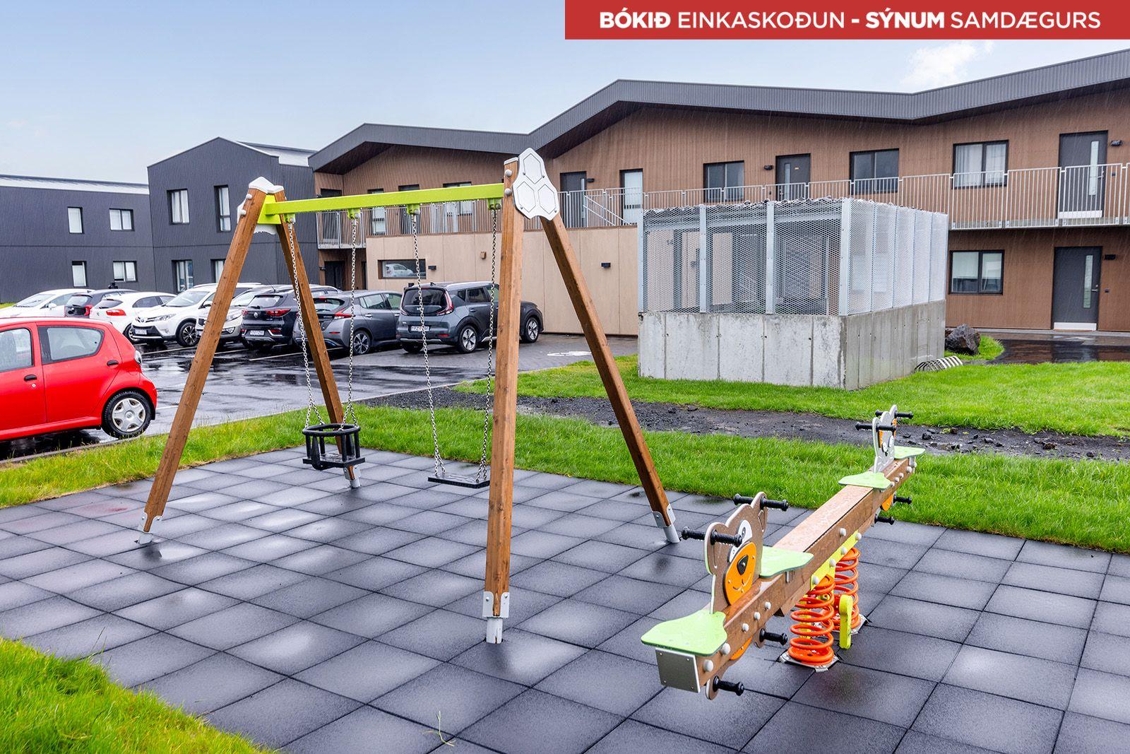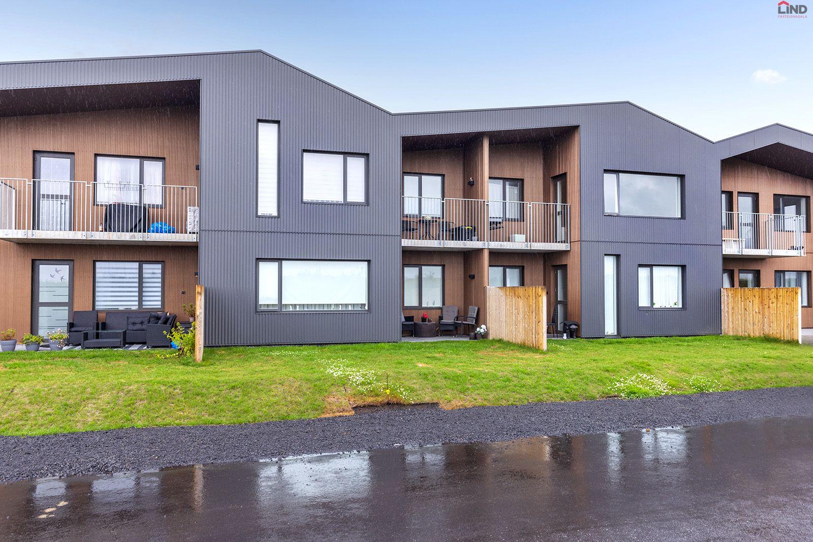 Eignin sem er skráð 92,2 m² er í fallegu nýlegu húsi sem hannað var af ARKÍS, byggt árið 2022.