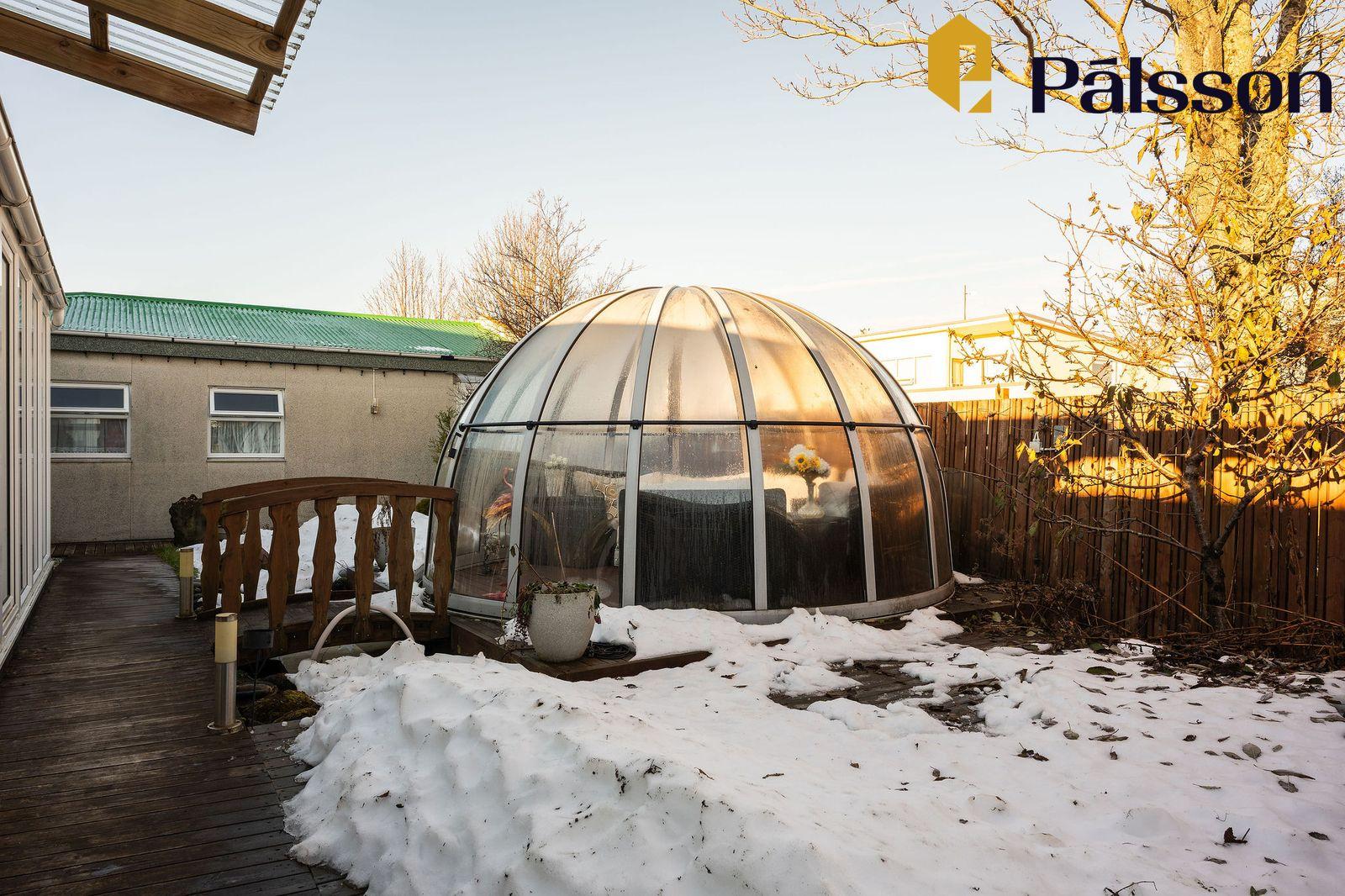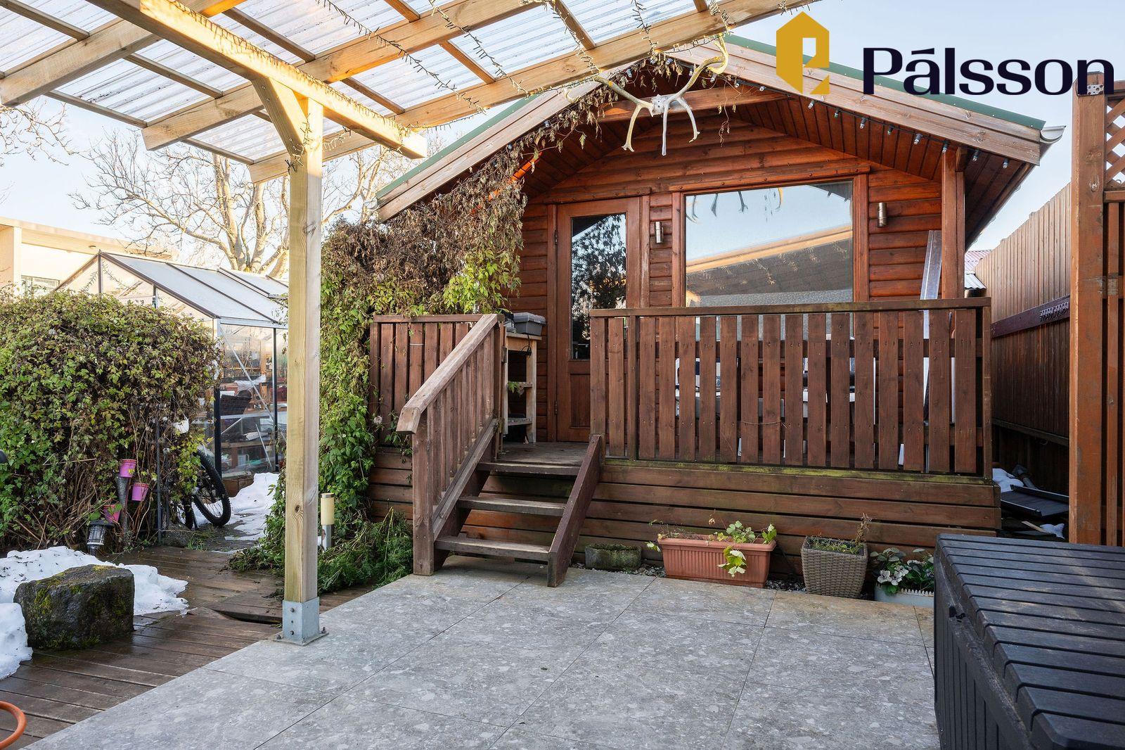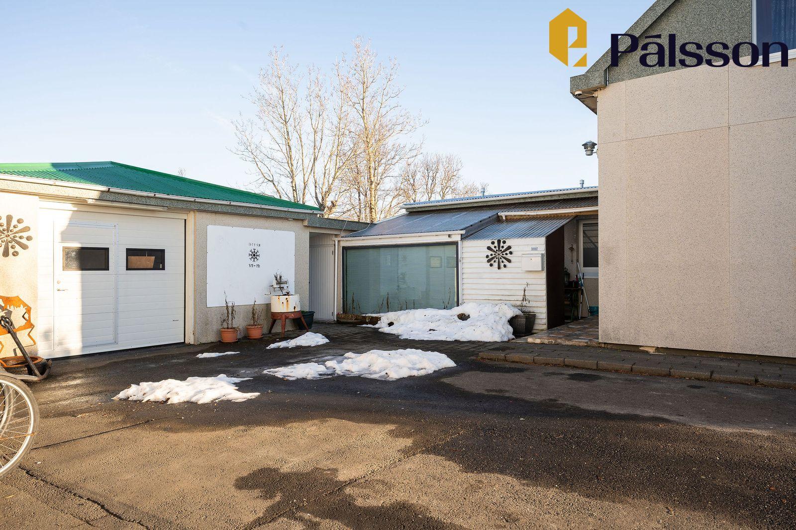 Geymsla: Geymsla er í bakgarði norðan megin við húsið.