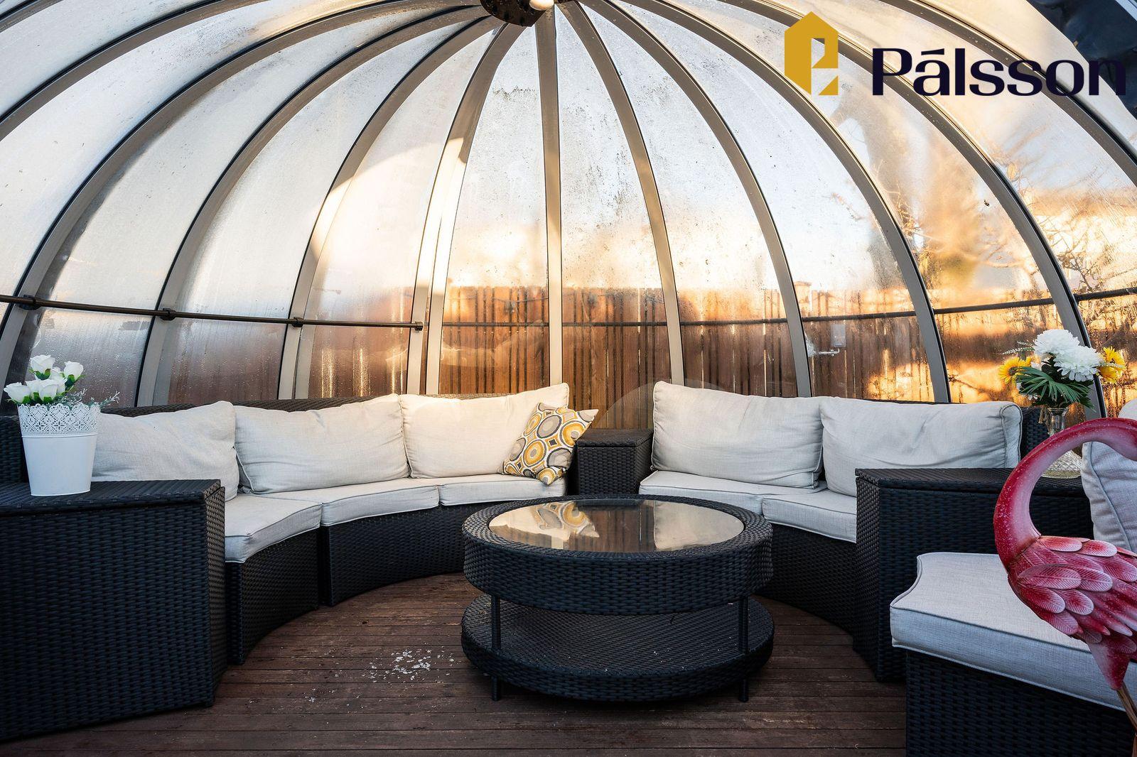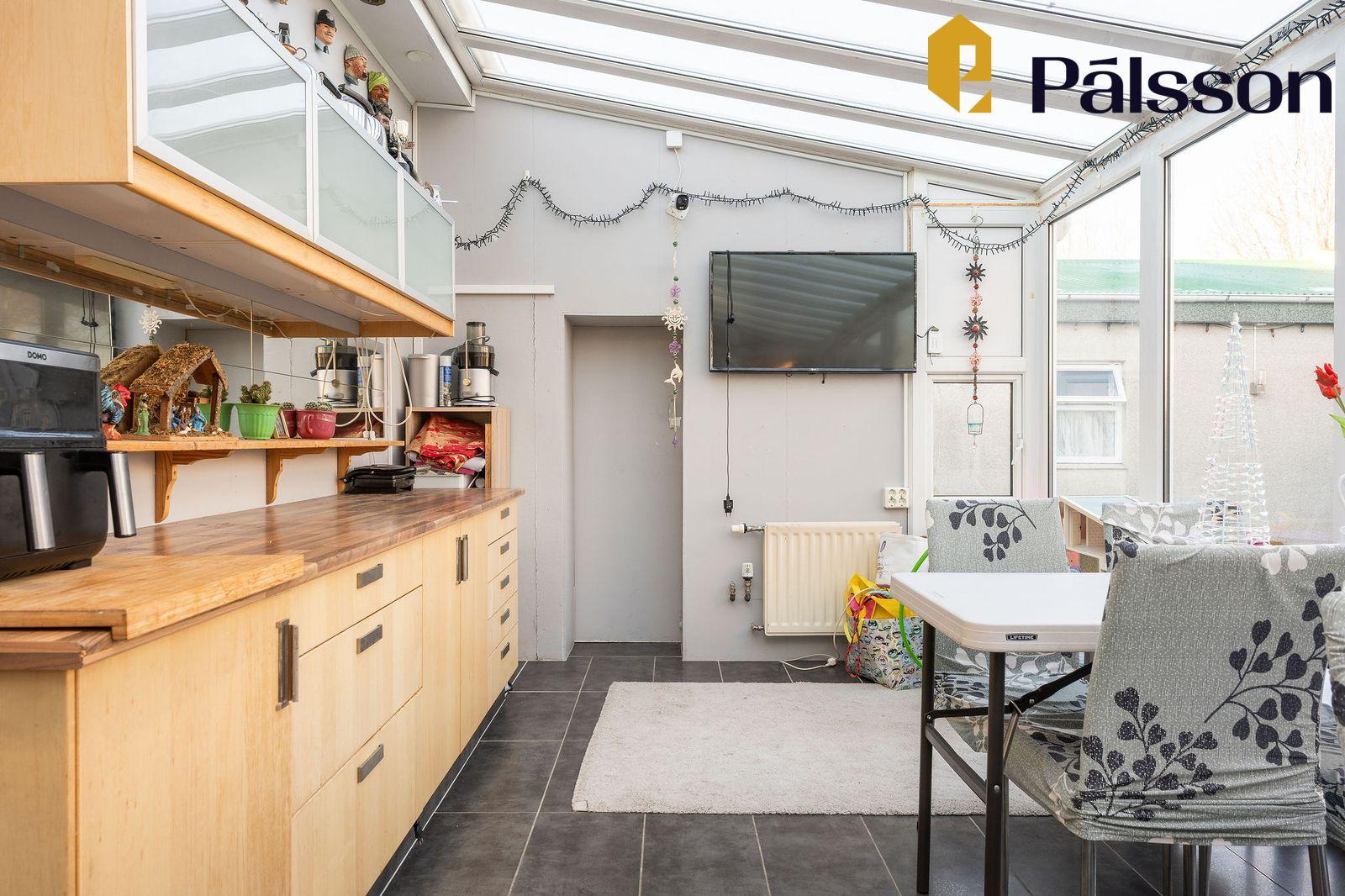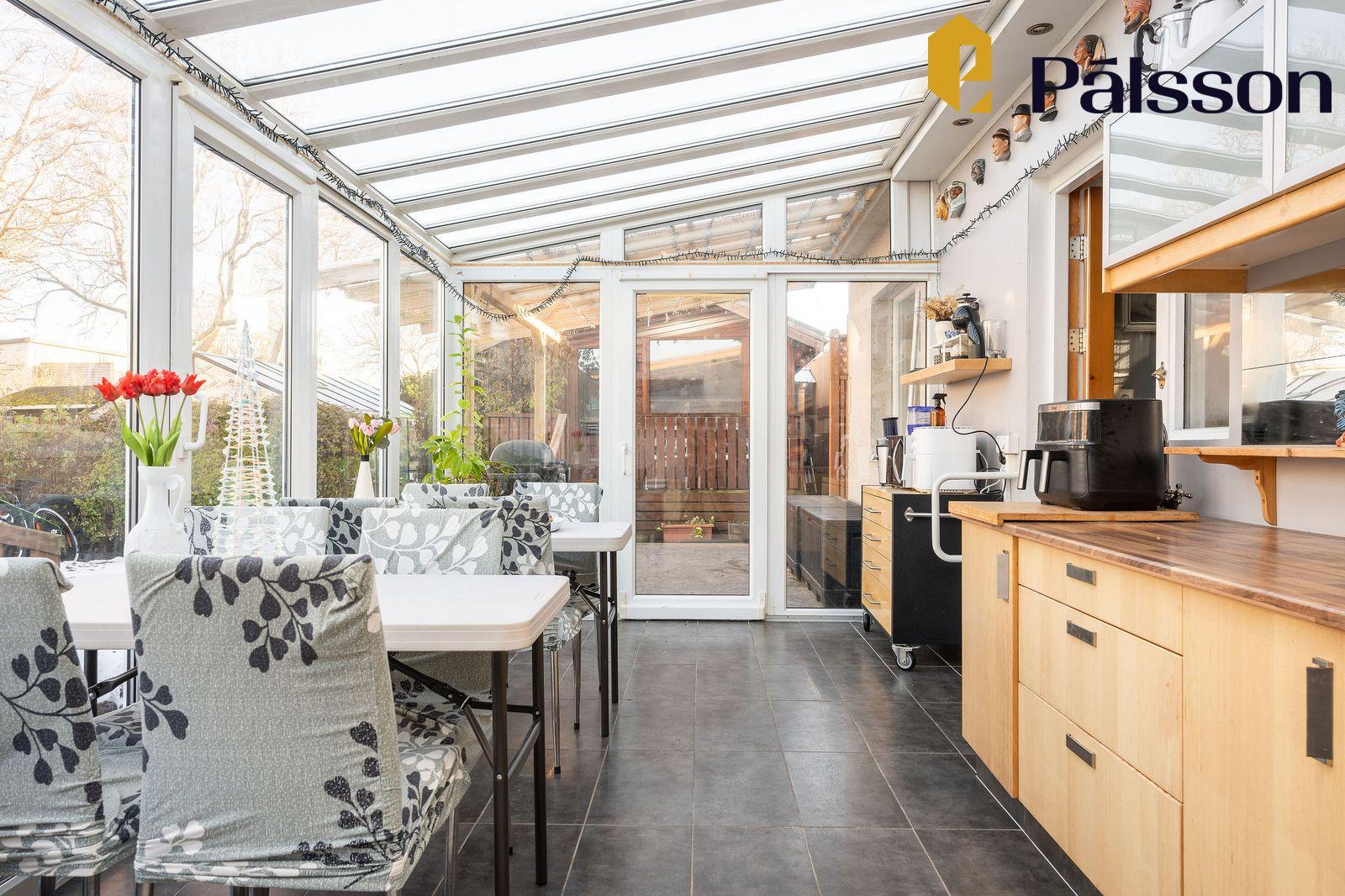 Borðstofa: Borðstofa er í sólstofu sem er opin að stærra eldhúsinu.