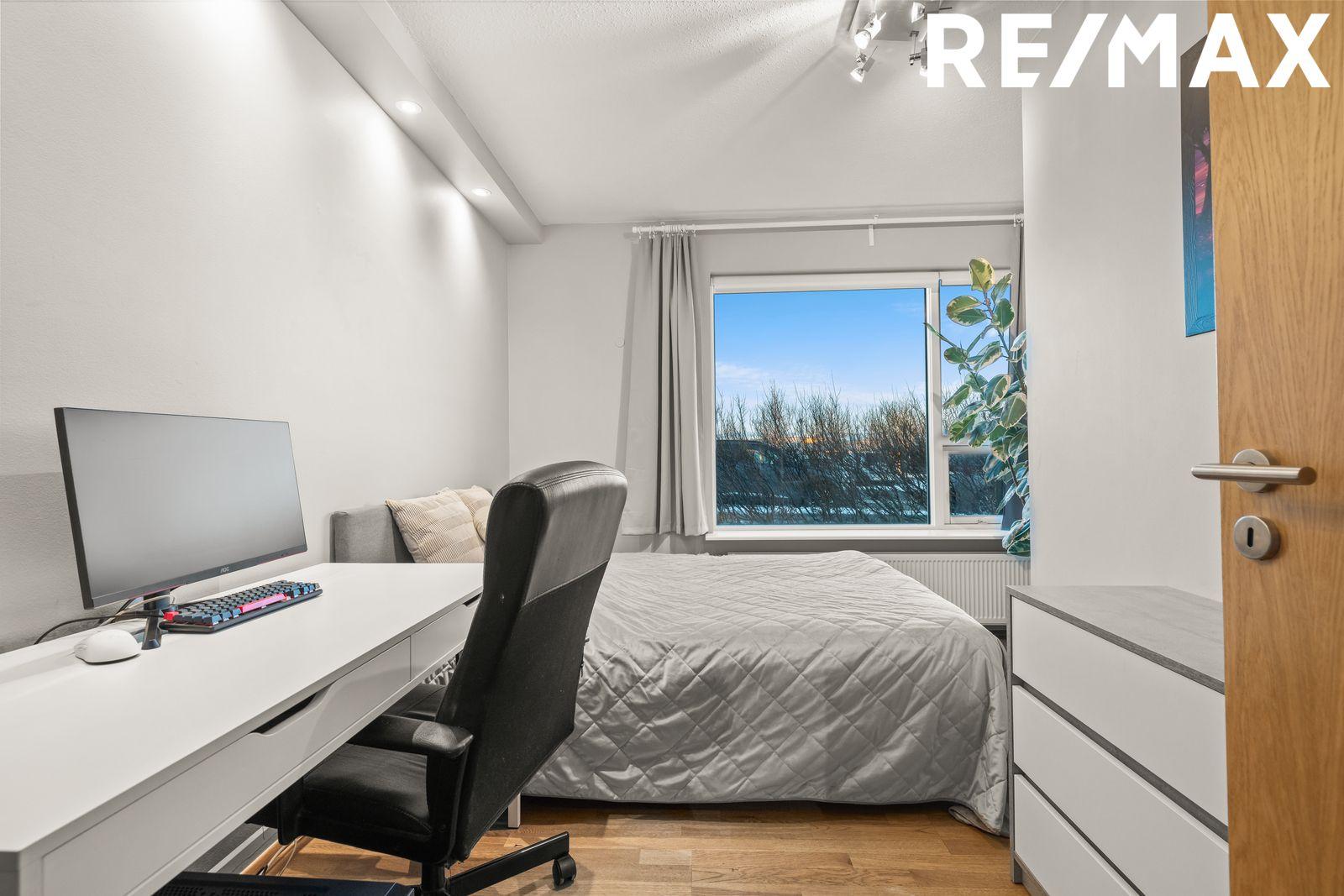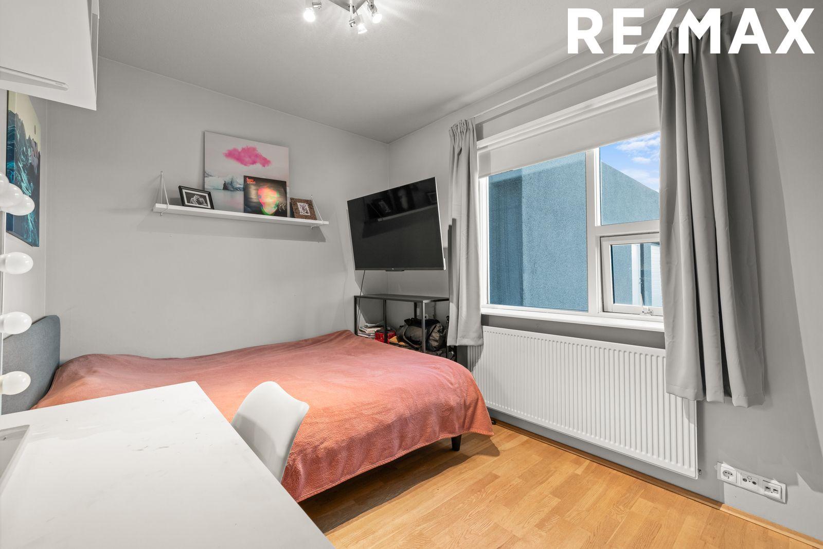 Herbergi III er stærst herbergjanna og með fjórföldum fataskáp sem nær upp í loft. Birt stærð herbergis er 15,32 m2.