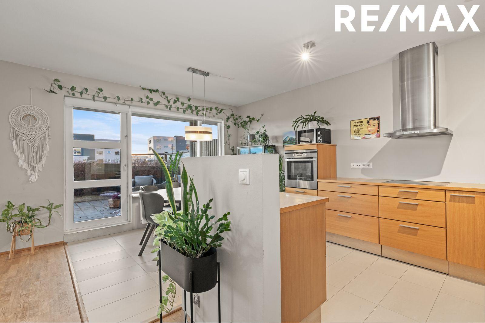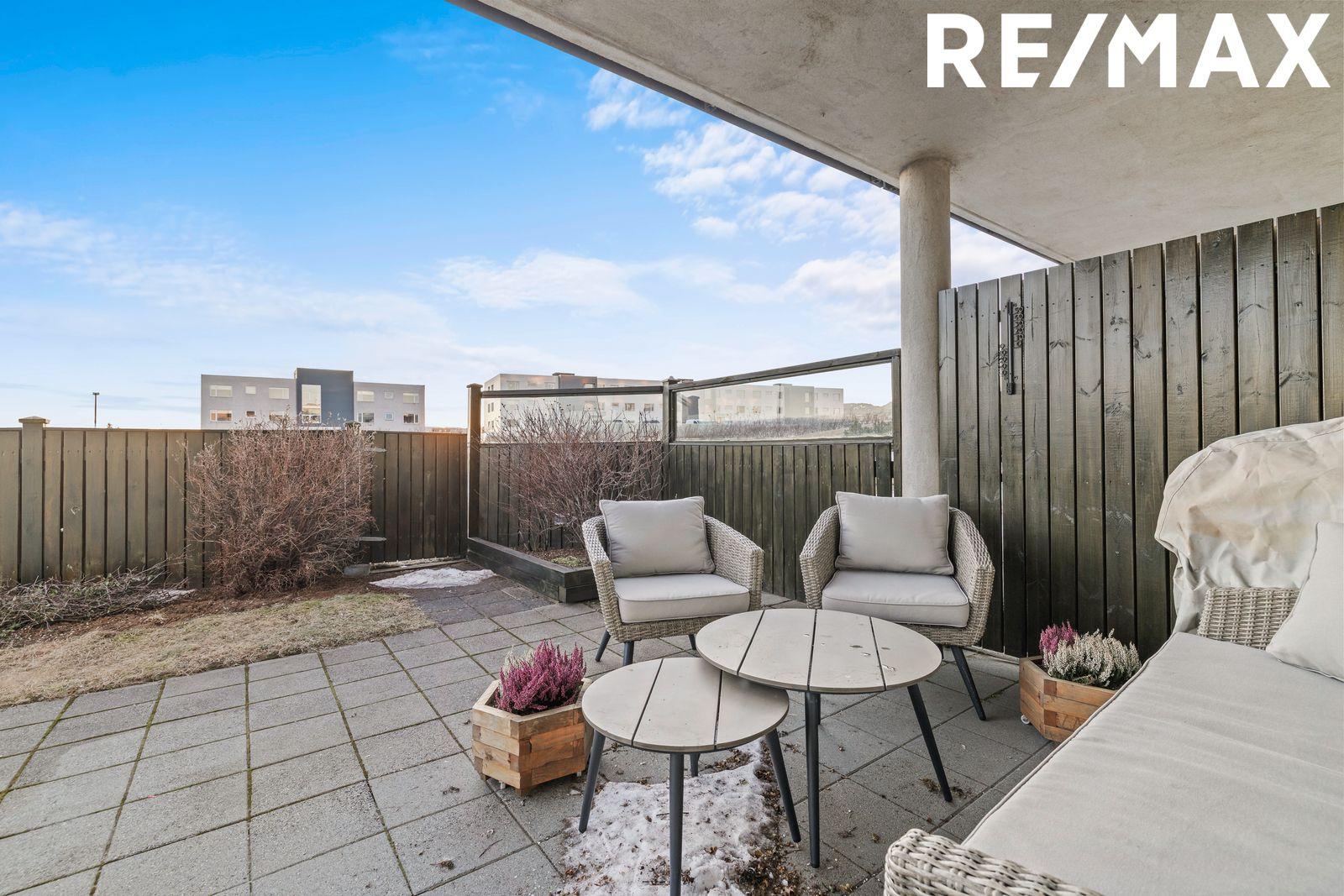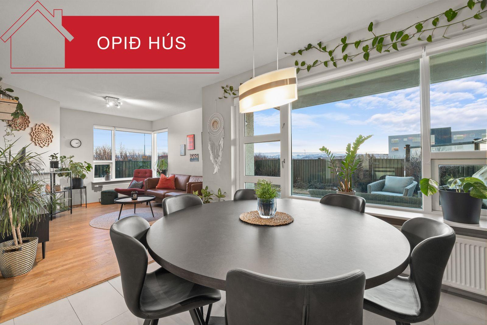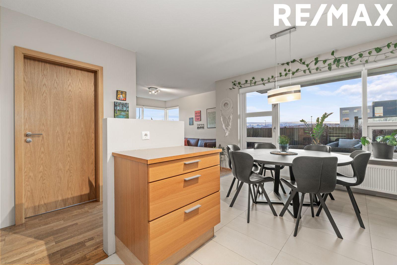 Sigrún Gréta hjá RE/MAX kynnir 5 herbergja íbúð með sér inngangi og sér afgirtri verönd að Álfkonuhvarfi 19 í Kópavogi. Íbúðinni fylgir mjög rúmgott stæði í lokaðri bílgeymslu. Bílgeymsla er á sömu hæð og íbúð og ekki er um neinar tröppur að fara. Auka herbergi var útbúið í hluta af stofu. Íbúðin er skráð 4ra herbergja en nýtist sem 5 herbergja. Húsið er í botnlanga og við götuna eru næg bílastæði um kvöld og helgar og umferð í lágmarki á þeim tíma, en þar er leikskólinn Sólhvörf. Göngufæri er einnig í Vatnsendaskóla og er göngubrú í beinni línu frá húsinu yfir Vatnsendaveg, þannig að ekki þarf að fara um umferðargötur.
