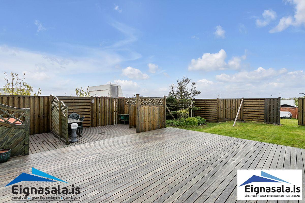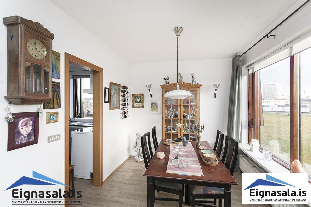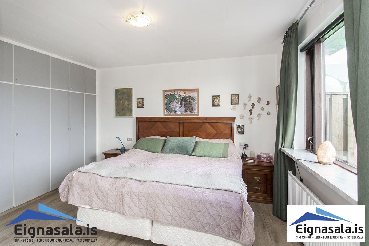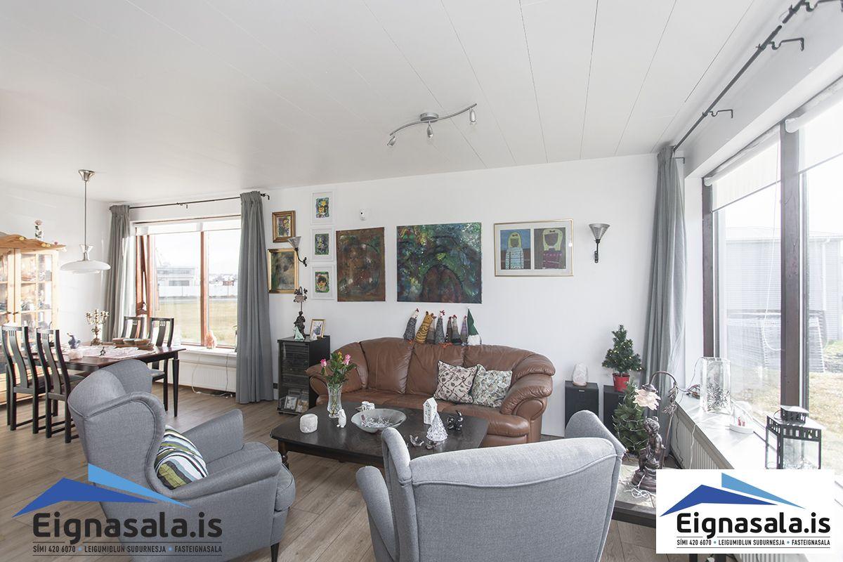 Nánari lýsing eignar: Anddyri með flísum á gólfi. Gestasalerni innaf anddyri. Eldhús með eldri innréttingu og nýlegu harðparketi á gólfi. Þvottahús innaf eldhúsi með útgengi á sólpall á baklóð. Borðstofa með nýlegu harðparketi. Mjög björt stofa með nýlegu harðparketi. Herbergjagangur með 4 svefnherbergjum, þar af er tvö minni herbergi sem hægt er að sameina í eitt. Nýlegt harðparket á öllum rýmum. Baðherbergi á herbergjagangi. Flísar á gólfi og veggjum. Sturtuklefi. Á baklóð er stór lokaður sólapallur með heitum potti. Mjög nýlegt járn á þaki, ný inngögnuhurð. Bílskúr er óeigangraður. Allir innveggir eru léttir, sami eigandi frá 1978 sem hefur haldið eigninni vel við.