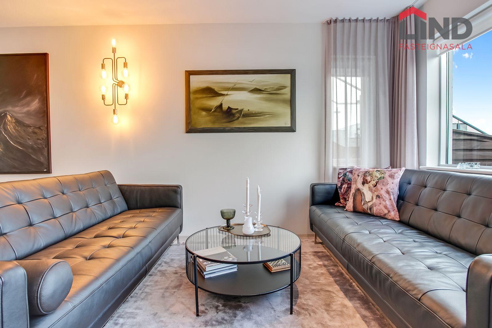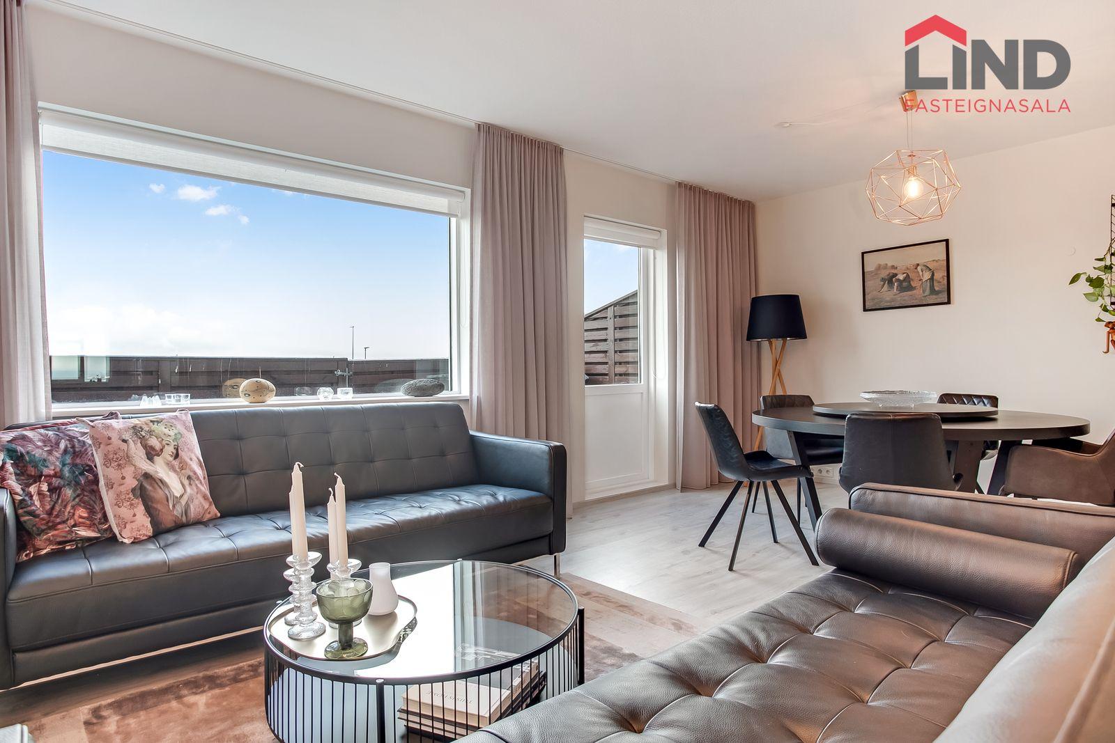 Stofa-borðstofa með parket á gólfi og er mjög opin og björt og útgengt er á suðurpall. Auðvelt er að útbúa fjórða svefnherbergið þar sem núna er sjónvarpshol.