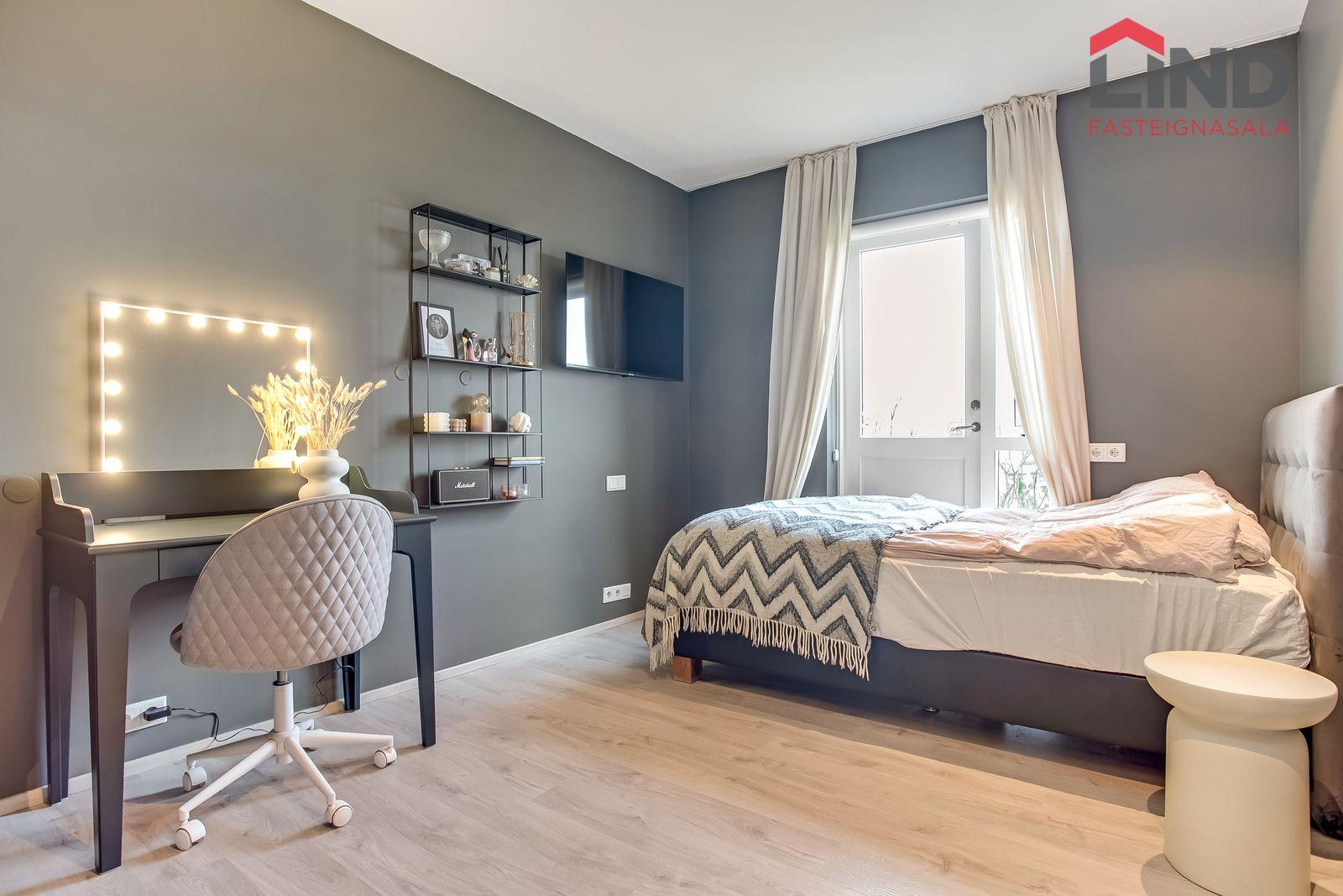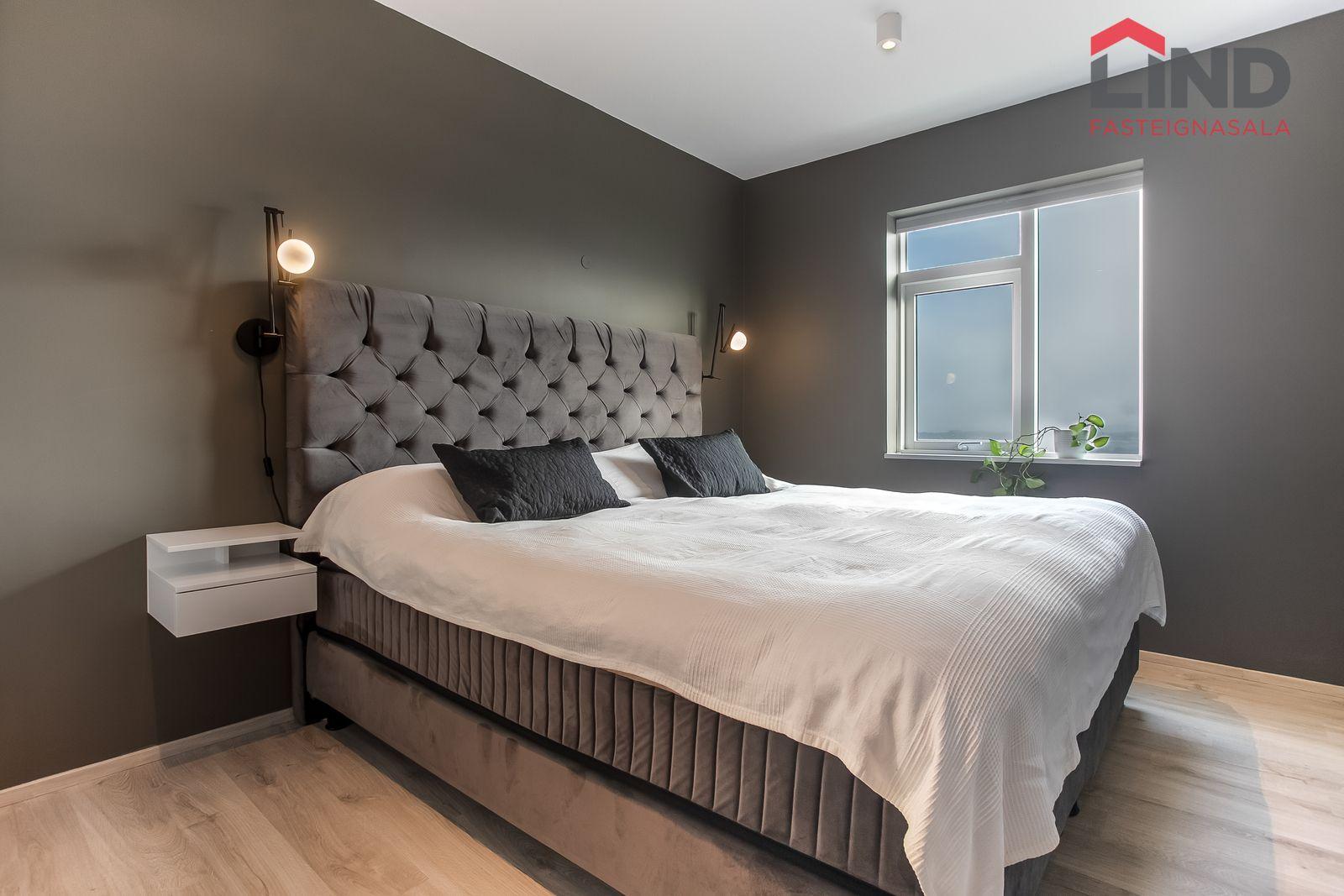 Svefnherbergin eru tvö með parket á gólfi og fataskápum, útgengt er úr öðru herberginu út í garð. Leyfi er til að byggja verönd.