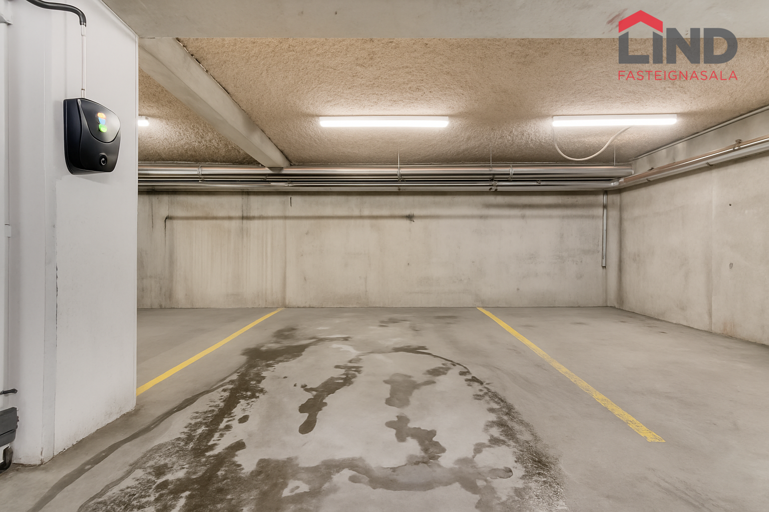 Litil geymsla er undir stiga með hita. Sameiginleg lóð með leiktækjum. Mjög gott stæði í bílageymslu með rafhleðslustöð. Allar upplýsingar um eignina veitir Helga Pálsdóttir fasteignasali í síma 822 2123 eða helga@fastlind.is