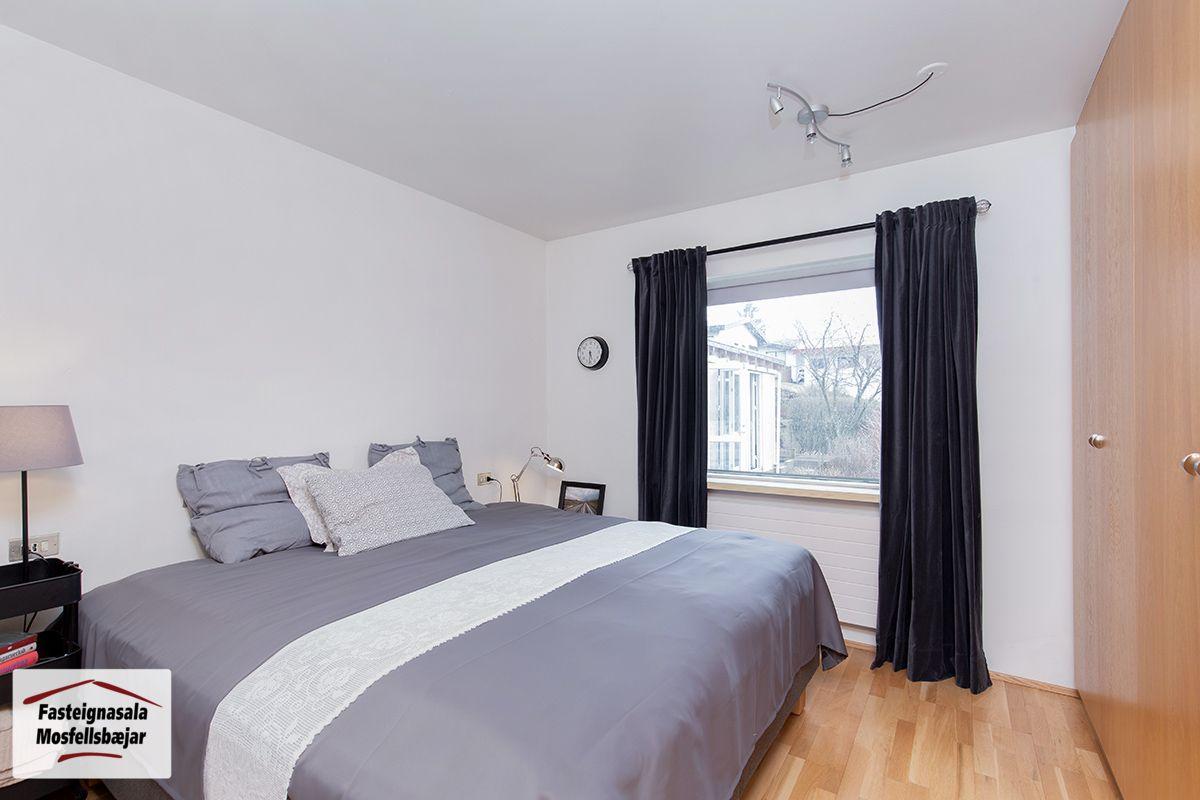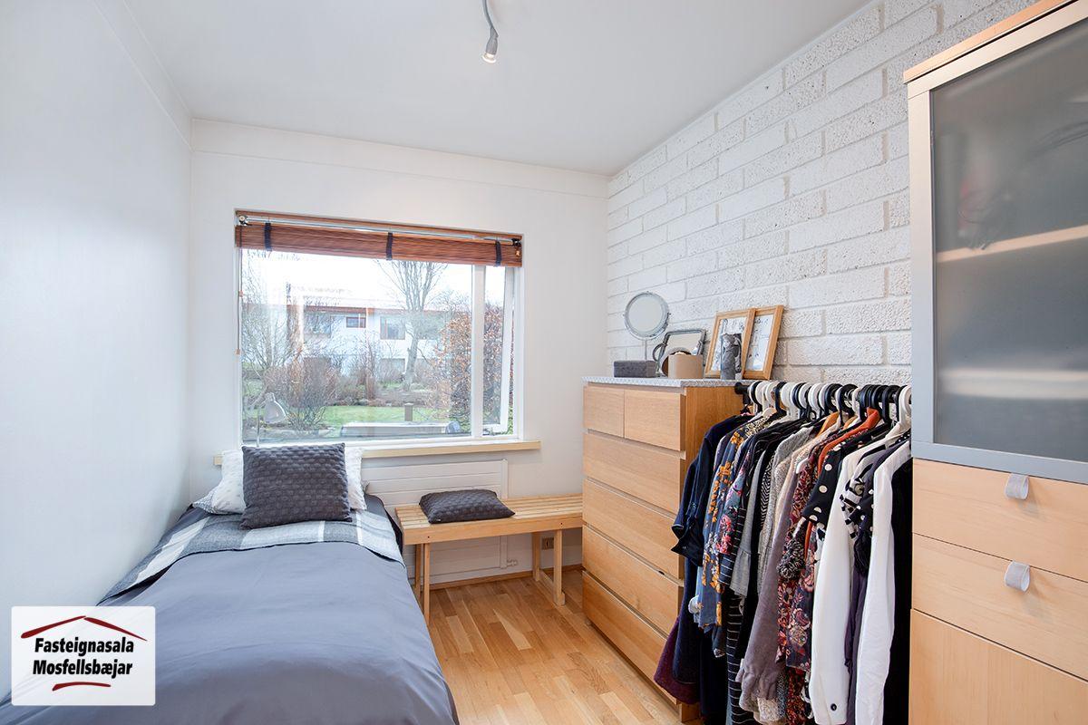 svefnherbergi (var áður tvö svefnherbergi). Á hægri hönd er flísalagt