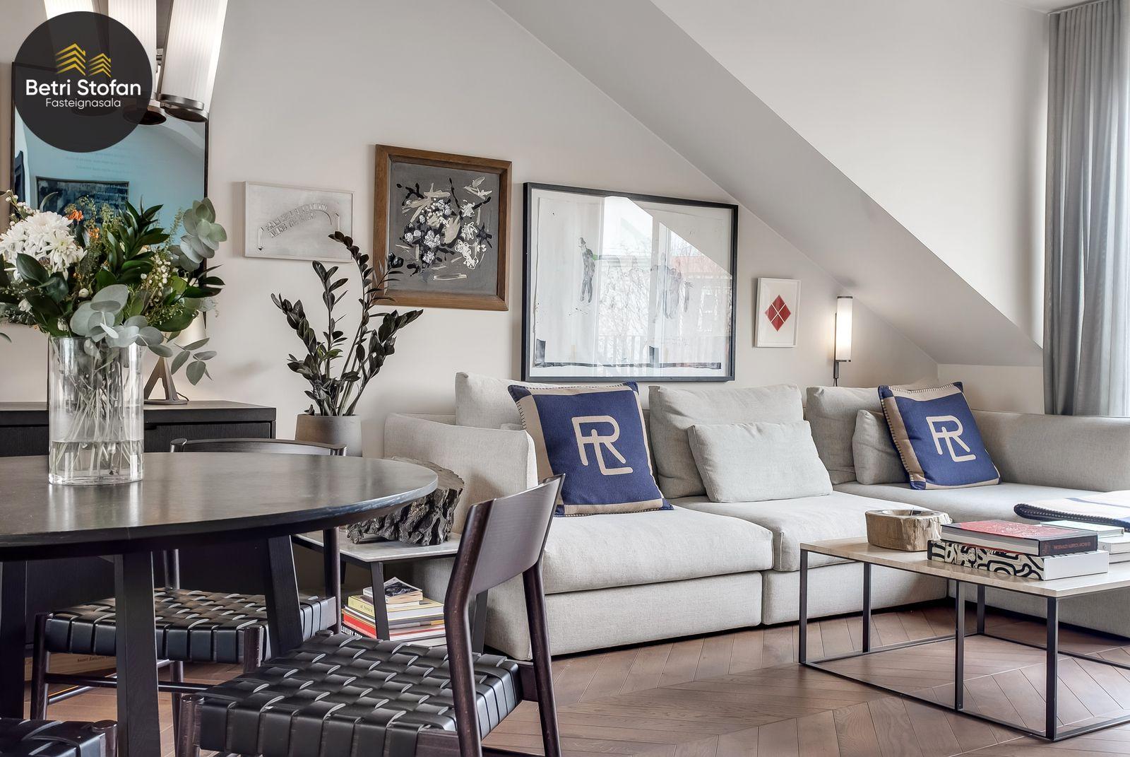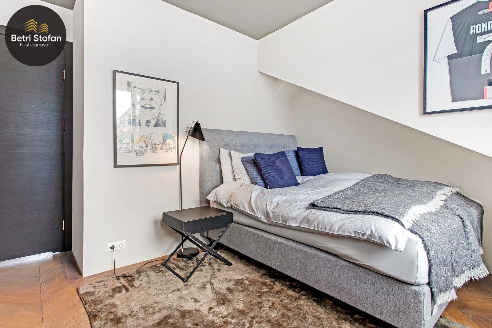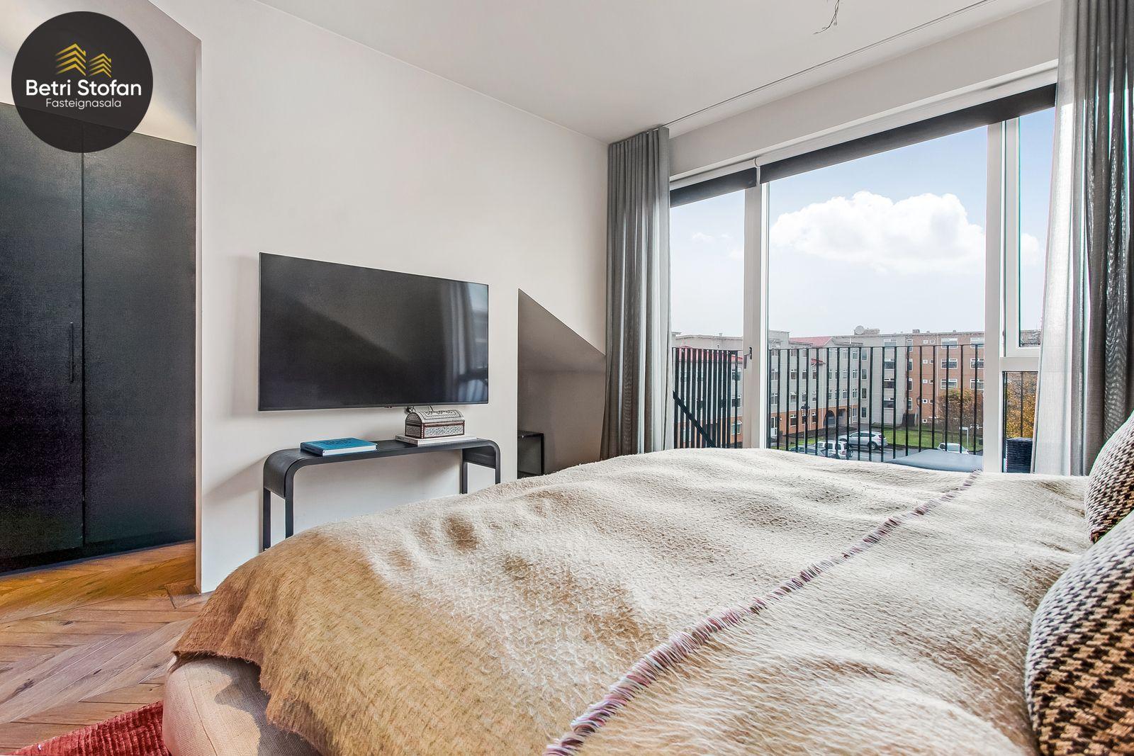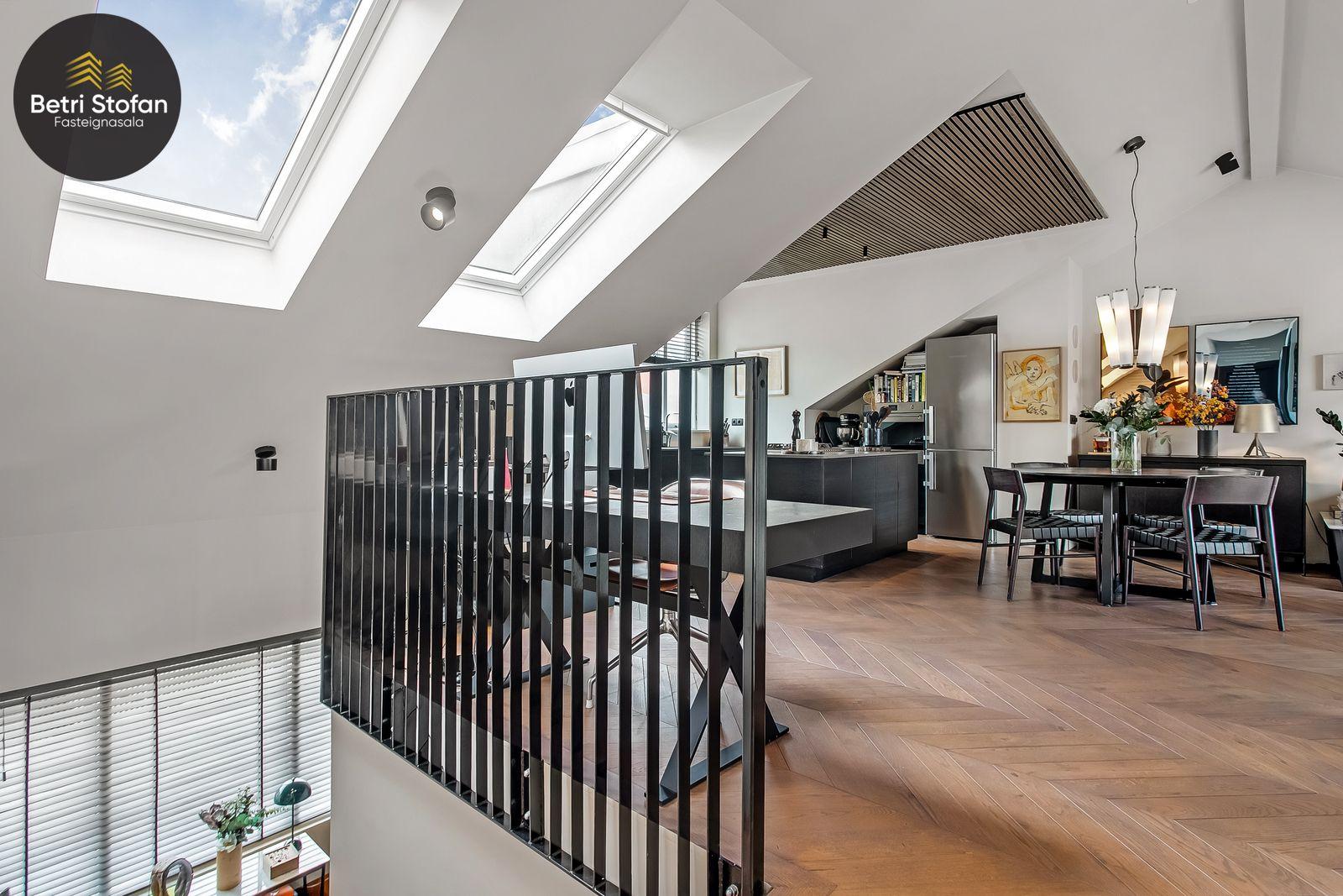 Betri Stofan og Jason Kristinn sími 7751515 jason@betristofan.is kynna: Nýlega íbúð 109,1 fermetra við Framnesveg 40. Eignin skiptist í forstofu, eldhús, stofu, tvö svefnherbergi, baðherbergi, tvennar svalir og geymslu ásamt sérmerktu stæði. Nánari lýsing. Gengið er inn í forstofu með innbyggðum skápum. Teppalagður stigi tekur við sem leiðir mann upp í alrými íbúðar. Á vinstri hönd er stigapallur sem nýttur er í dag sem skrifstofa. Eldhús: Opið er inn fallegt eldhús með fallegum innréttingum á tvo vegu og góðri eyju með miklu skápa plássi. Steinn er á borðum og niðurfelldur vaskur. SMEG gashelluborð er staðsett í miðri eyjunni. SMEG bakarofn er í vinnuhæð. Stofur: eru samliggjandi með gólfsíðum gluggum en frá stofu er gengið út á góðar svalir. Hjónaherbergið er rúmgott, skráð 17,3 fm með góðum skápum og opnum hillum undir súð. Frá hjónaherbergi er einnig gengið út á svalir. Svefnherbergi II: rúmgott, skráð 12,4 fm. Baðherbegi er staðsett á milli svefnherbergja. Góð sturta, upphengt salerni og innrétting með stein á borði. Flísalagt með fallegum flísum. Þvottahús er innan íbúðar með góðri innréttingu þar sem gert er ráð fyrir þvottavél í vinnuhæð. Þakgluggi er á þvottahúsi. Geymsla skráð 6,2 fm. Stæði sérmerkt er á baklóð. Gegnheilt chevron parket er á gólfum, vandaðar flísar á votrýmum og teppi á stigagangi sem er innan íbúðar. Hljóðmottur frá Ebson í loftum alrýmis. Eldhús er opið inn í fallegt alrými og eru útgengt út á góðar svalir frá stofu. Tvö rúmgóð svefnherbergi, annað með fataherbergi undir súð og útgengt út á svalir. Gott þvottahús með innréttingum og þvottavél í vinnuhæð er innan íbúðar. íbúði er skráð 109,1 fermetrar en er stærri þar sem að eigin er að hluta til undir súð, Sameiginleg vagna og hjólageymsla er í bakhúsi.