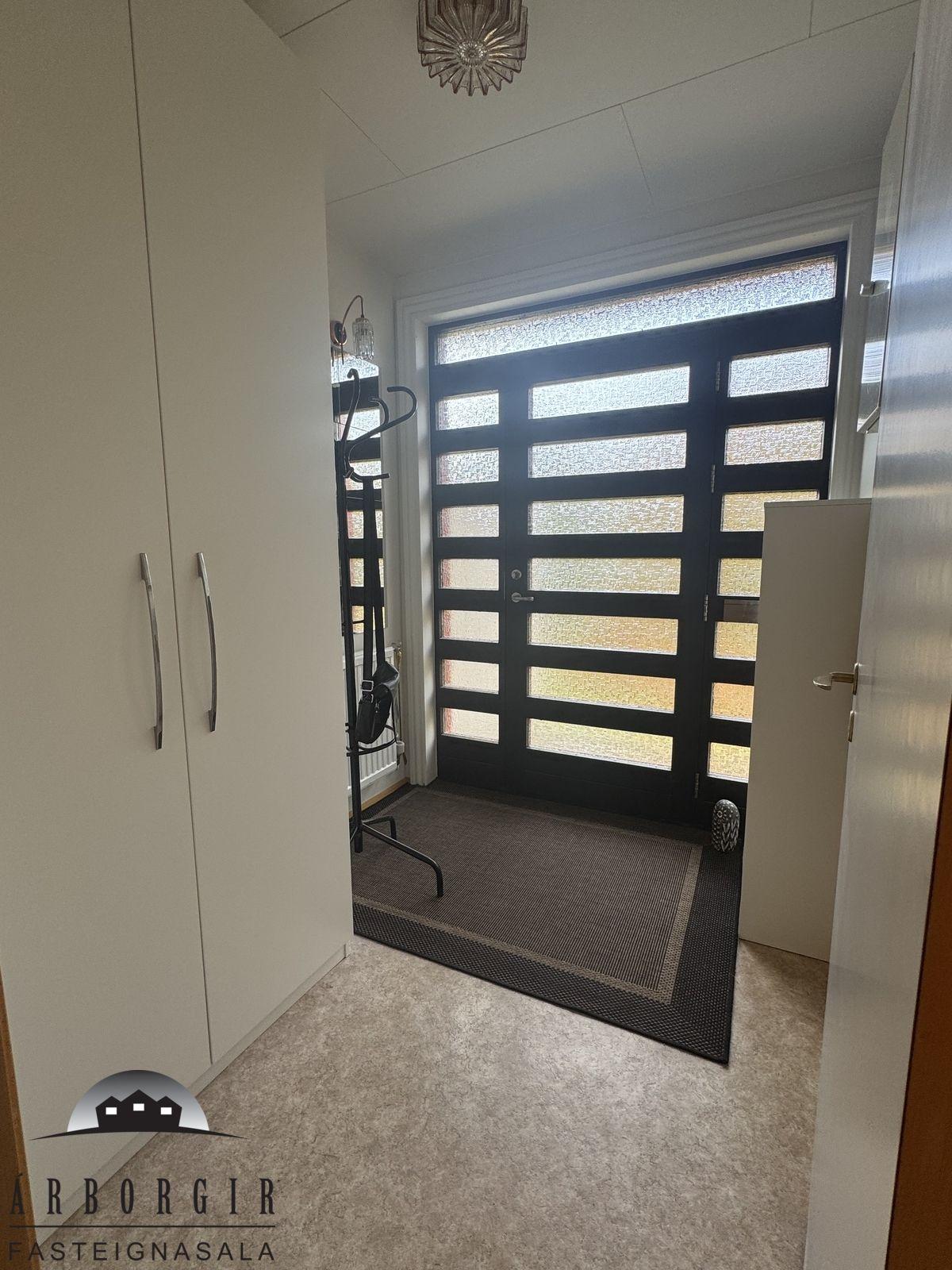 Nánari lýsing:Forstofa er dúklögð og þar er fataskápur.