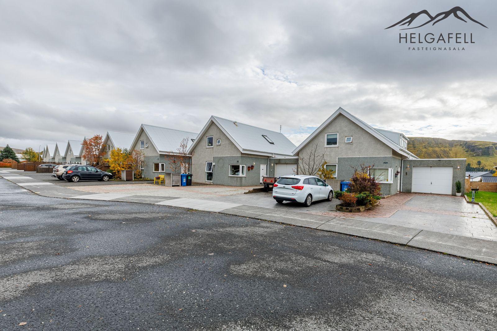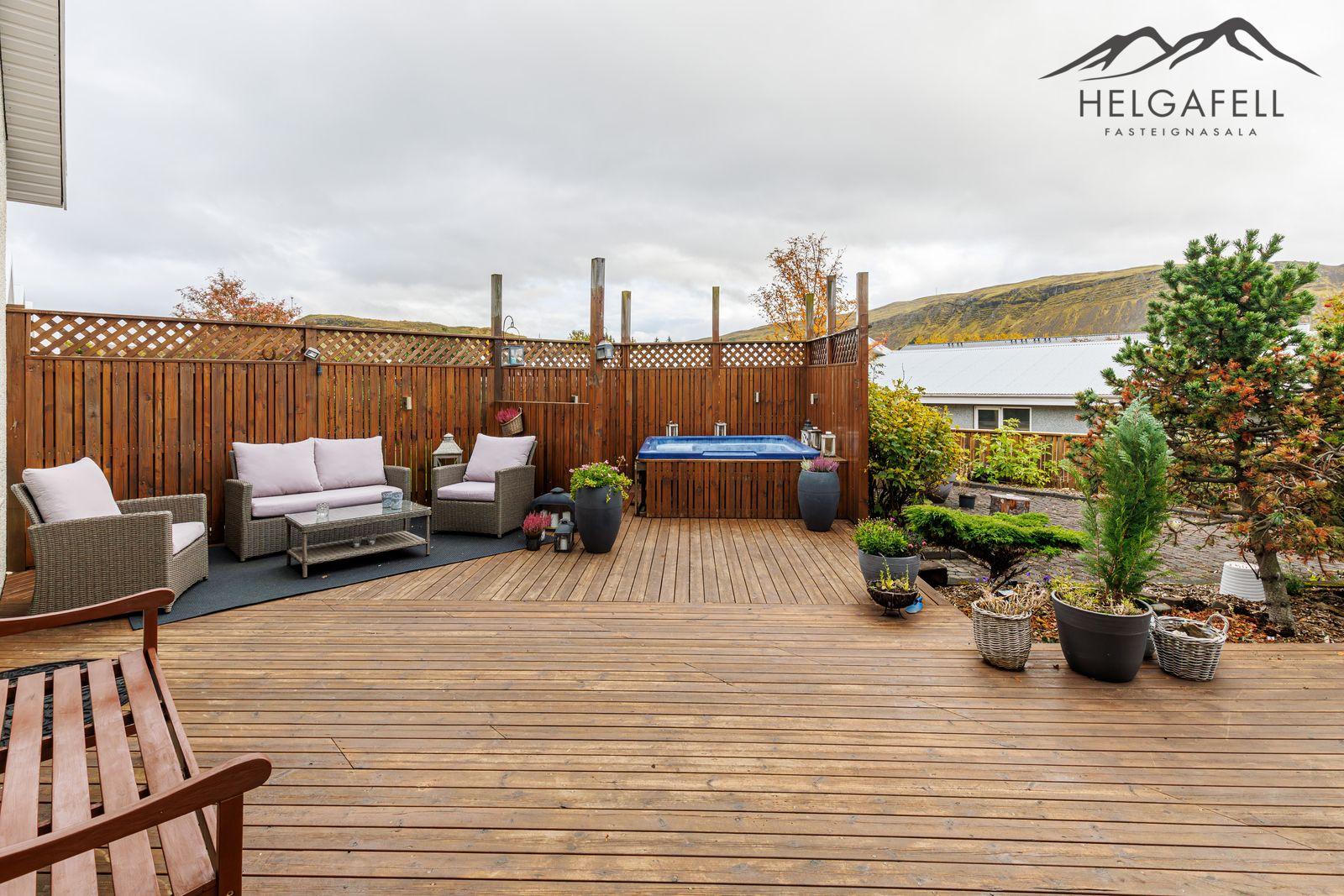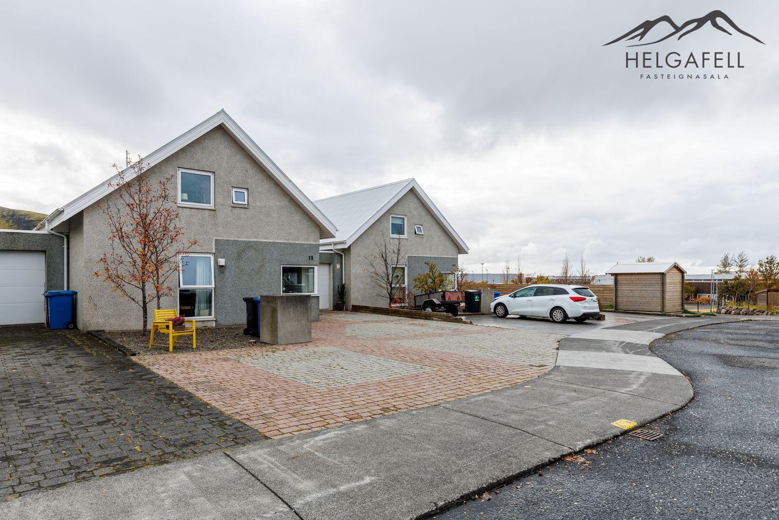 Fallegur, afgirtur pallur til suðurs. Í framhaldi af pallinum er svo búið að helluleggja garðinn sem þarfnast ekki mikillar umhirðu. Falleg blómabeð og ekkert gras til að slá. Fyrir framan bílskúr er hellulagt plan með snjóbræðslu.Fallegt, staðsteypt og steinað með kvarsi fjölskylduhús á mjög eftirsóttum stað í Mosfellsbæ. Skóli, leikskóli og sundlaug í næstu götu. Golfvöllurinn í göngufæri eða í ökufæri á golfbíl.