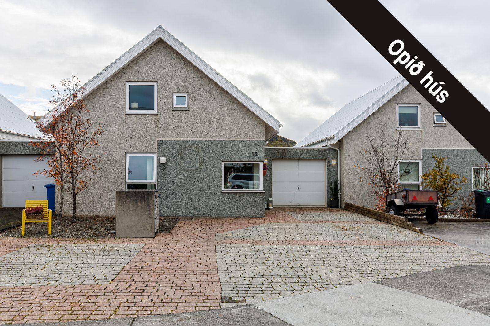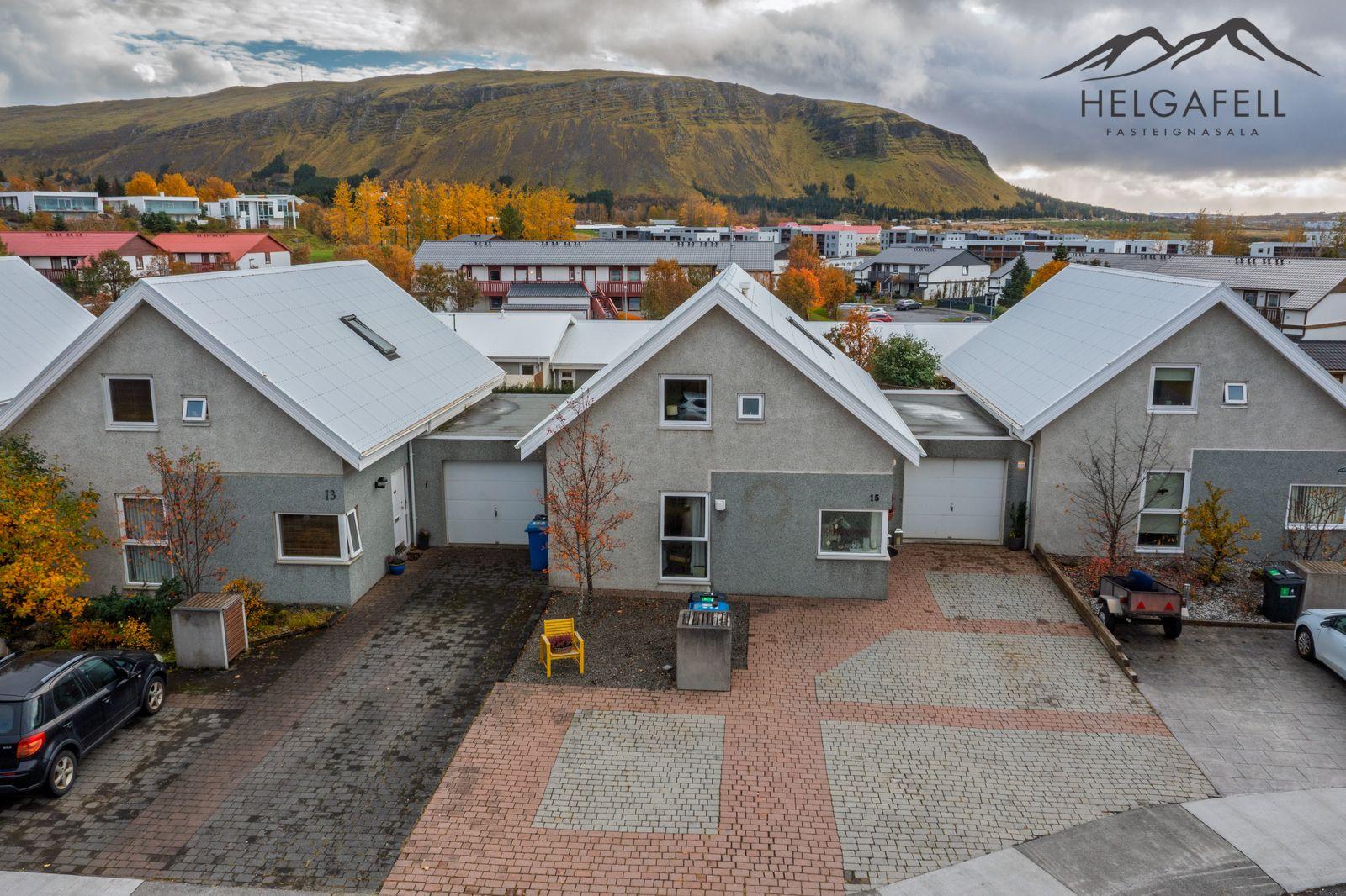 Helgafell fasteignasala kynnir til sölu 174,6fm. raðhús á tveimur hæðum ásamt bílskúr við Hjallahlíð 15 í Mosfellsbæ. Eignin er skráð neðri hæð 82,9fm., efri hæð 66,6fm og bílskúr 25,1fm.