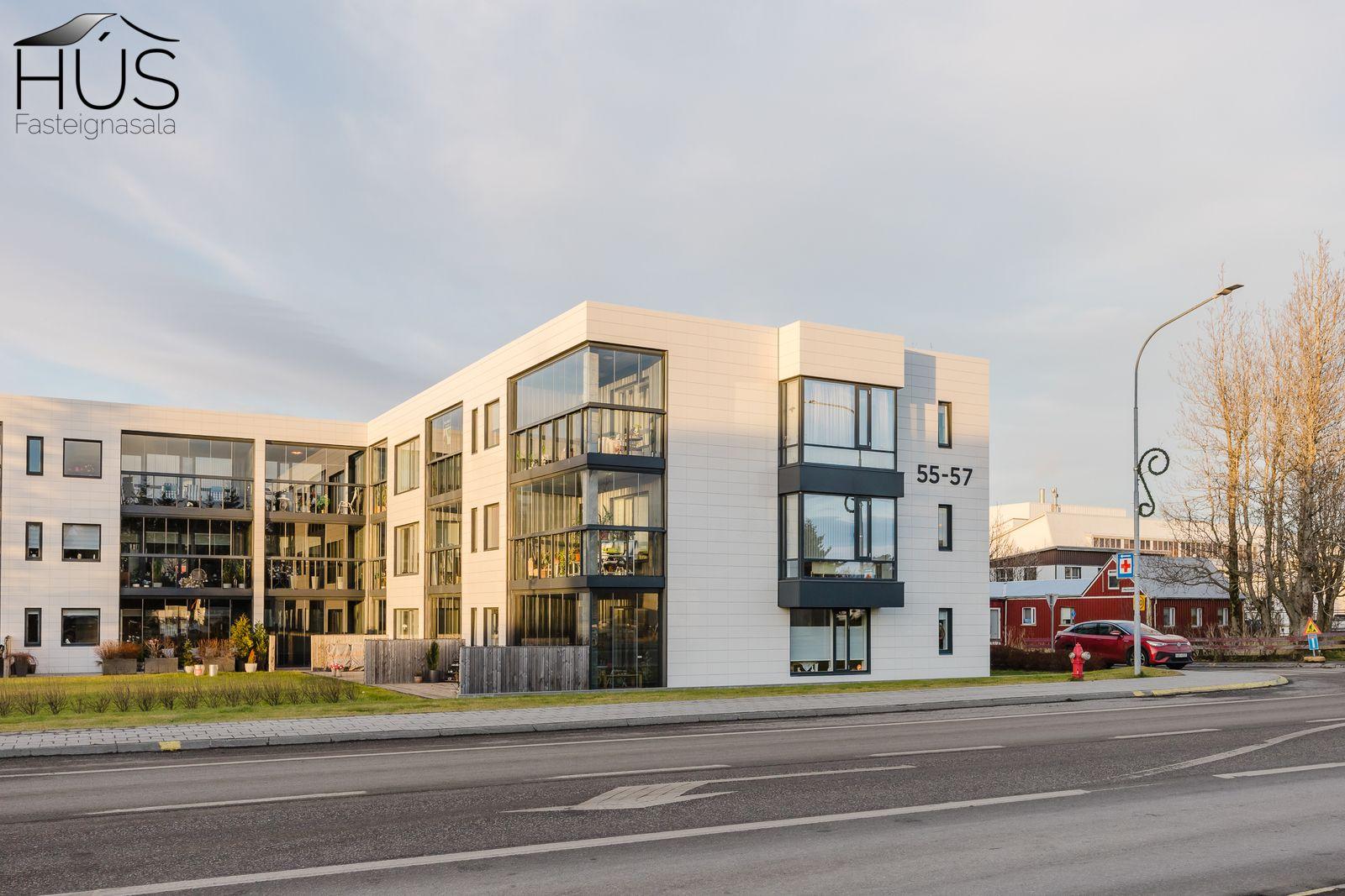Húsið er uppsteypt, klætt að utan með fallegum flísum og lituðu járni í bland. Alls eru 27 íbúðir á þremur hæðum auk kjallara, húsið er með tveimur lokuðum stigahúsum og hálflokuðum svalagöngum.