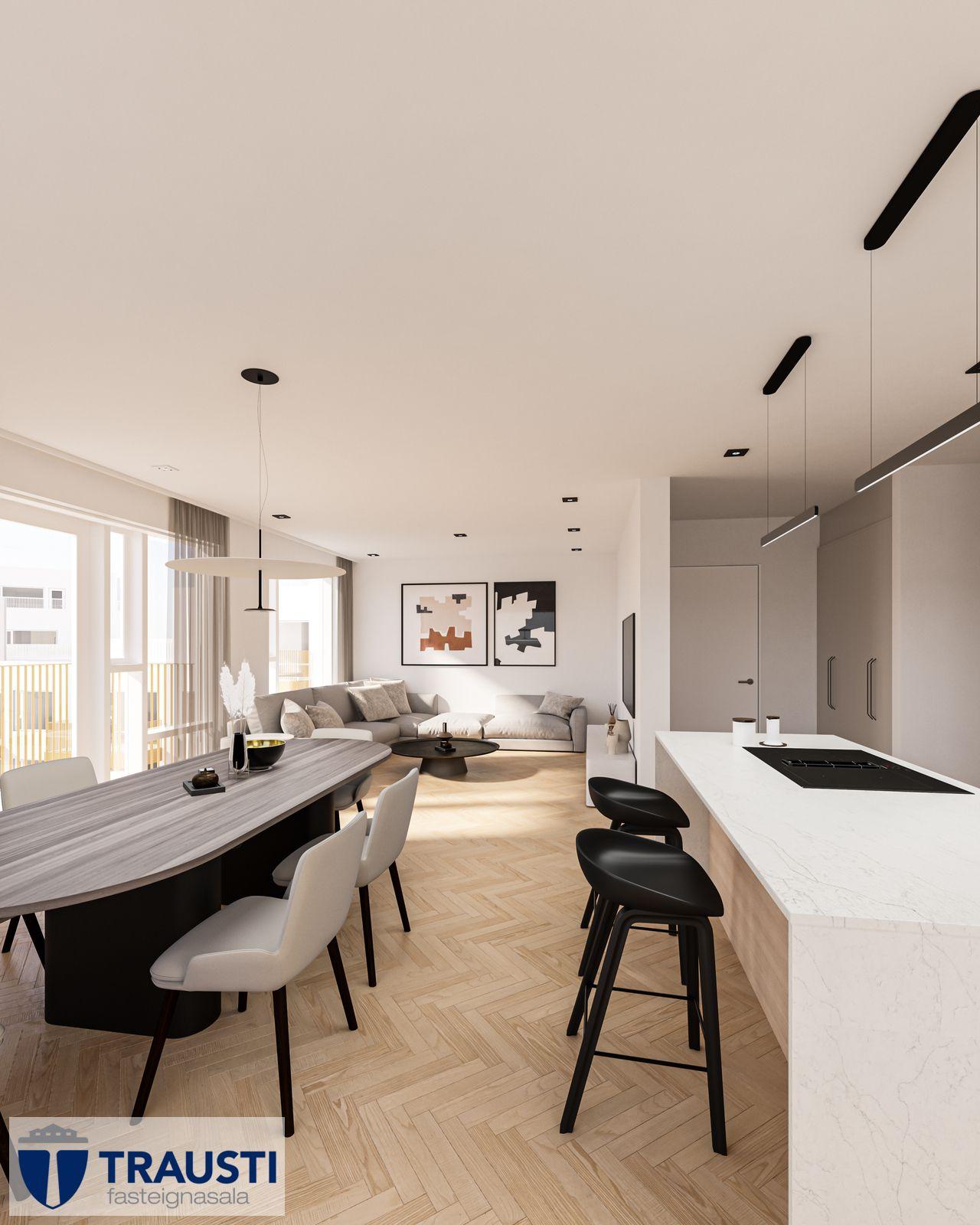 Bílakjallari undir húsinu er stór og rúmgóður og verða rúmlega þúsund stæði og gott aðgengi að rafhleðslustöðvum. Íbúar hússins hafa aðgang að stæði í bílakjallara gegn hóflegu gjaldi. 115 íbúðir í íbúðakjarnanum á 3 til 6 hæðum og afhendast í 4 áföngum. Húsið er vel hannað þegar kemur að birtustigi og hverfist um skjólgóðan inngarð. Frábær staðsetning í nýju hverfi á Kirkjusandi, þar sem líflegur Laugardalurinn er í göngufæri með allt það sem hann hefur upp á að bjóða og örstutt í miðbæ Reykjavíkur. Afhending er fyrirhuguð í nóv 2025