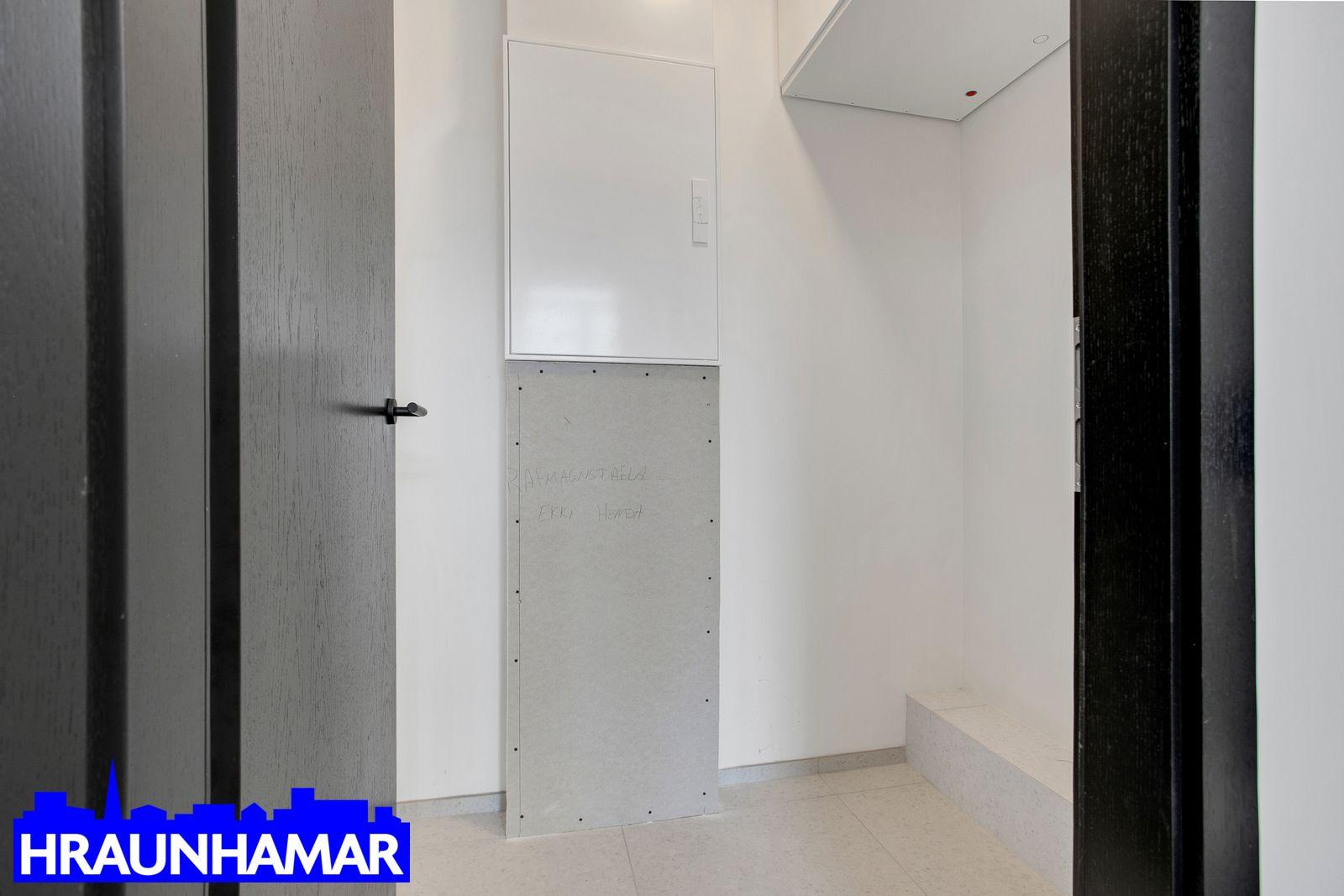 - Innréttingar frá Brúnás, sýnilegir fletir á innréttingum verða úr Gladstone melamin efni og að innan úr ljósgráum spónaplötum.