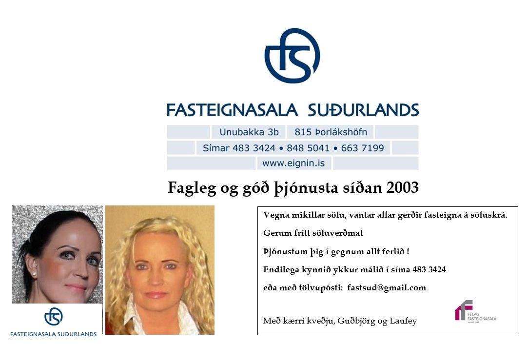 FASTEIGNASALA SUÐURLANDS HEFUR VEITT VANDAÐA OG GÓÐA ÞJÓNUSTU SÍÐAN 2003 !