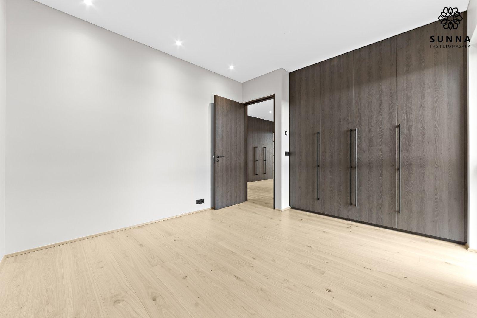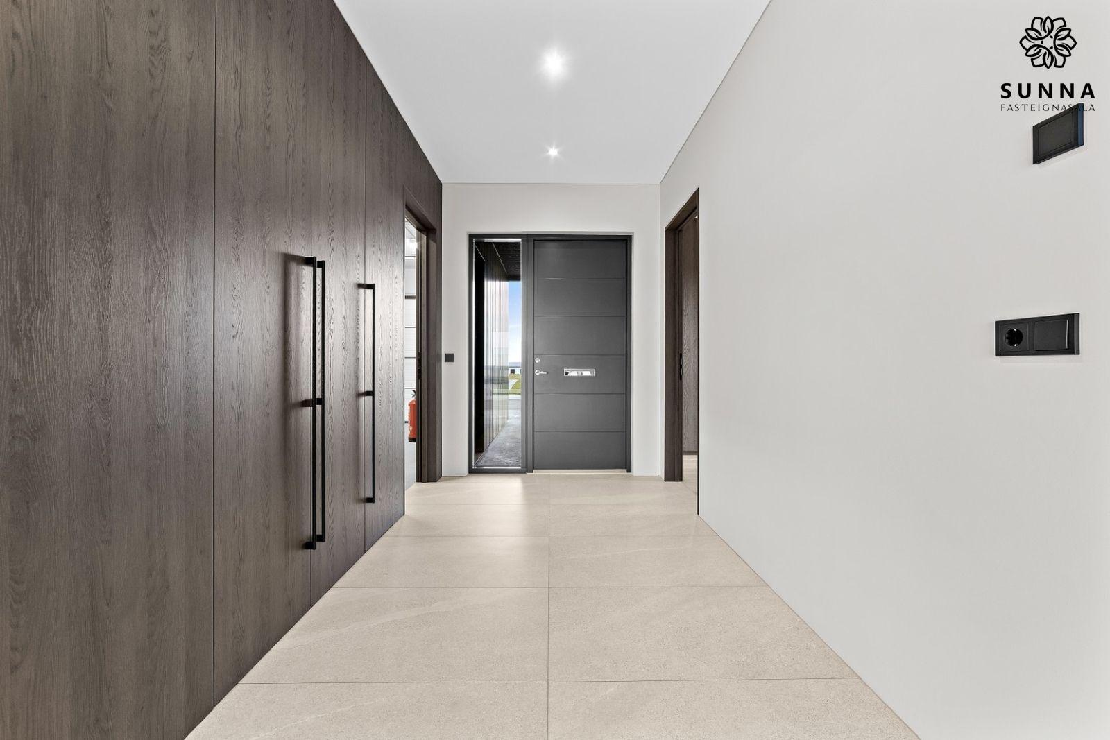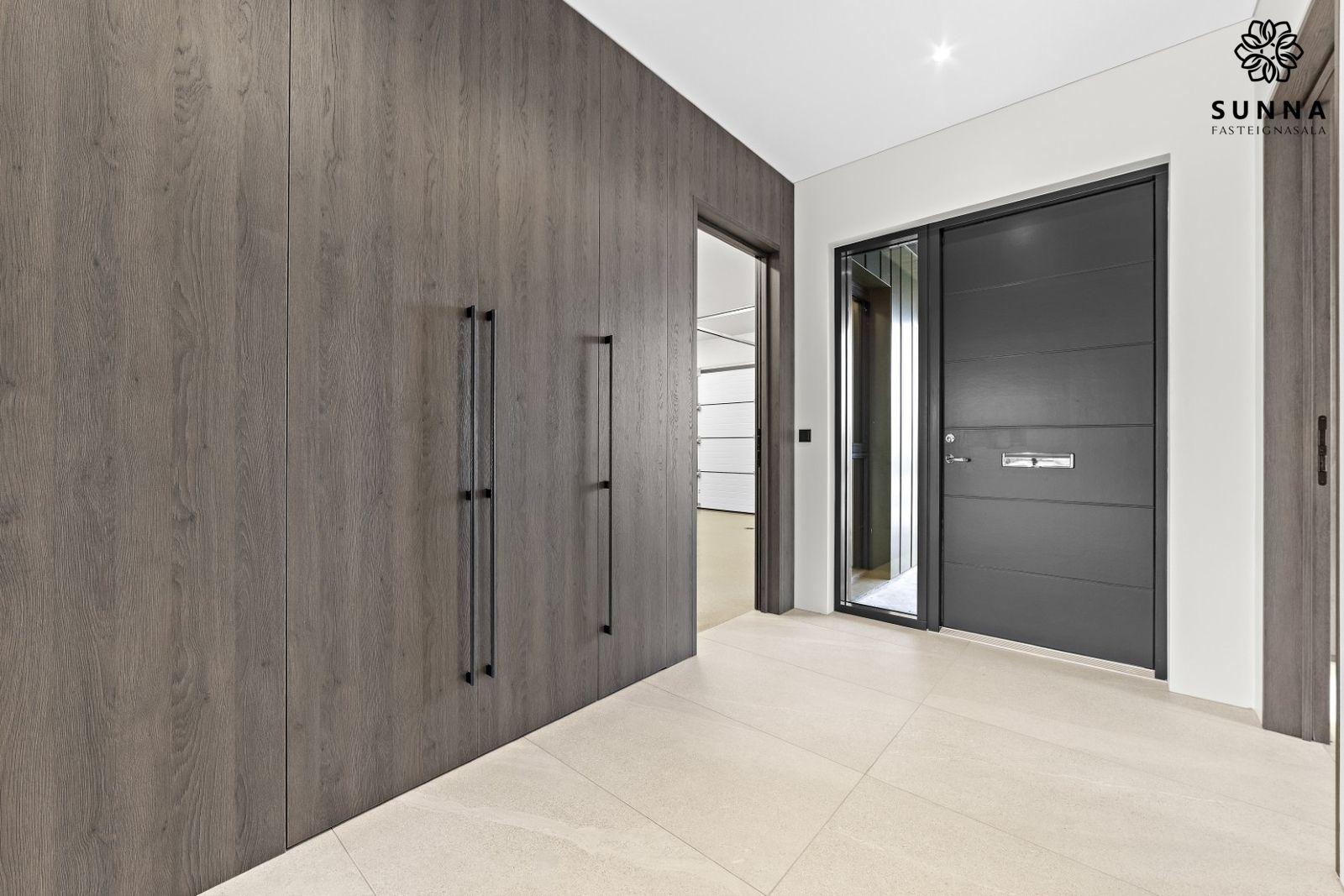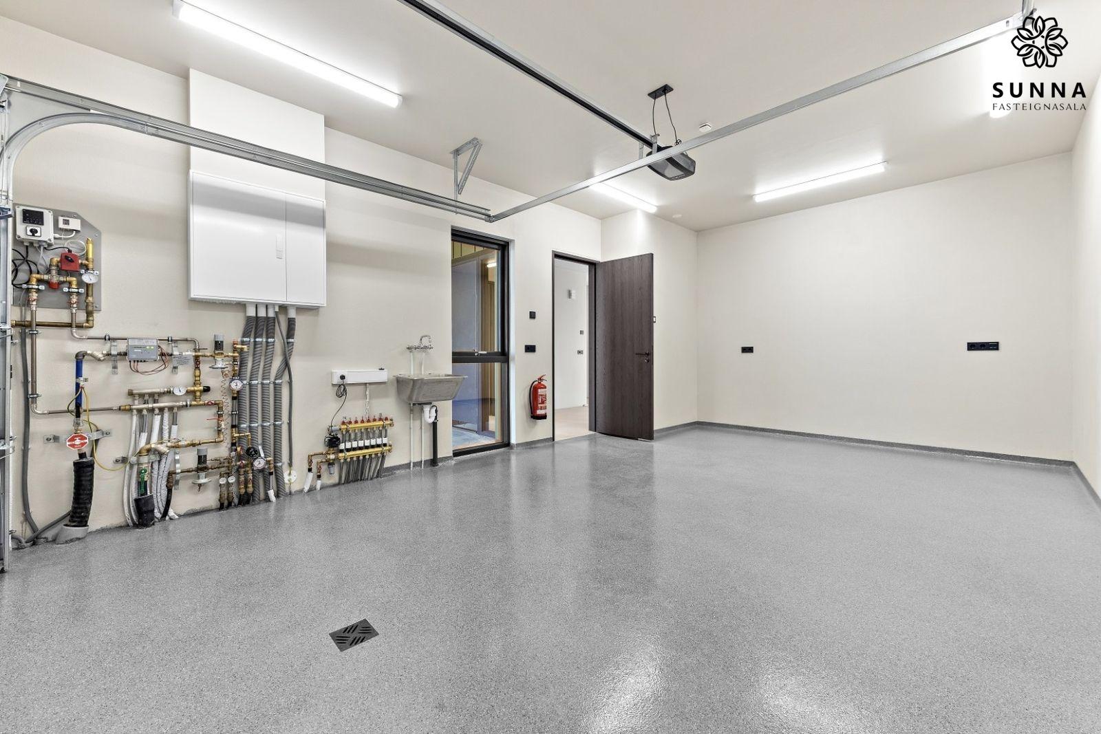 ATH. Húsin eru tilbúin til afhendingar. Skoða myndband af eigninni. Allar innréttingar og hurðar eru sérsmíðaðar frá Grindinni ehf. og skilast með vönduðum eldhústækjum frá Siemens, þ.á.m. innbyggðum ísskáp og uppþvottavél. Þau skilast fullmáluð og með hágæða gólfefnum. Gólfhiti er í öllum gólfum og hljóðvistardúkur er í loftum. Akrýlsteinn er á borðplötum. Nánari upplýsingar eru í skilalýsingu: