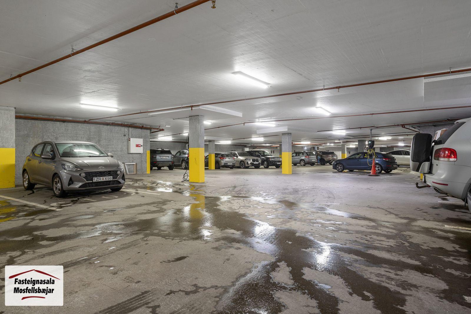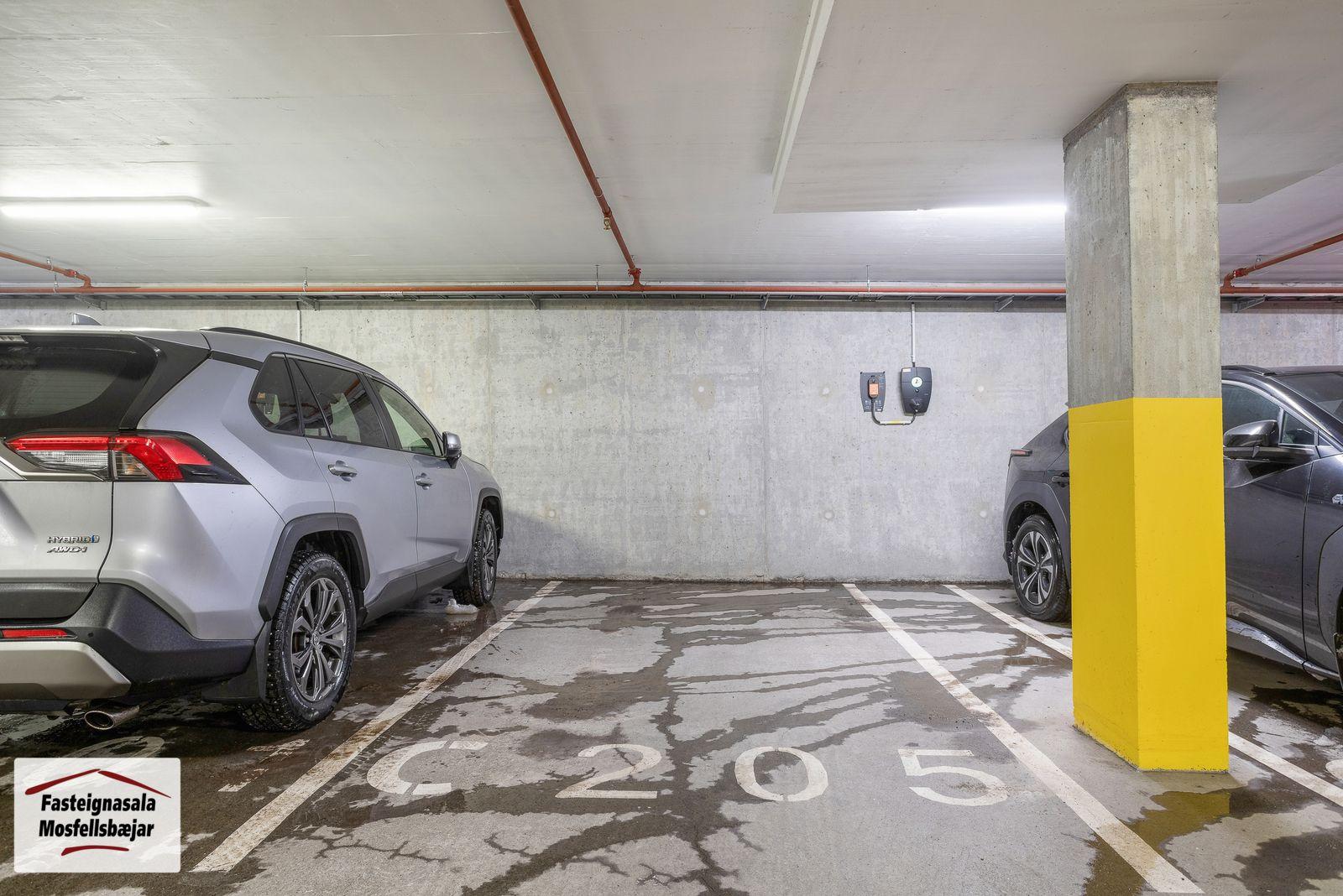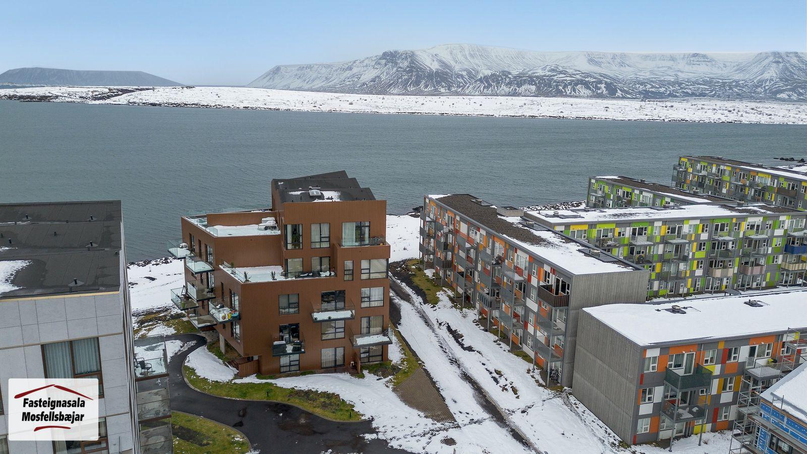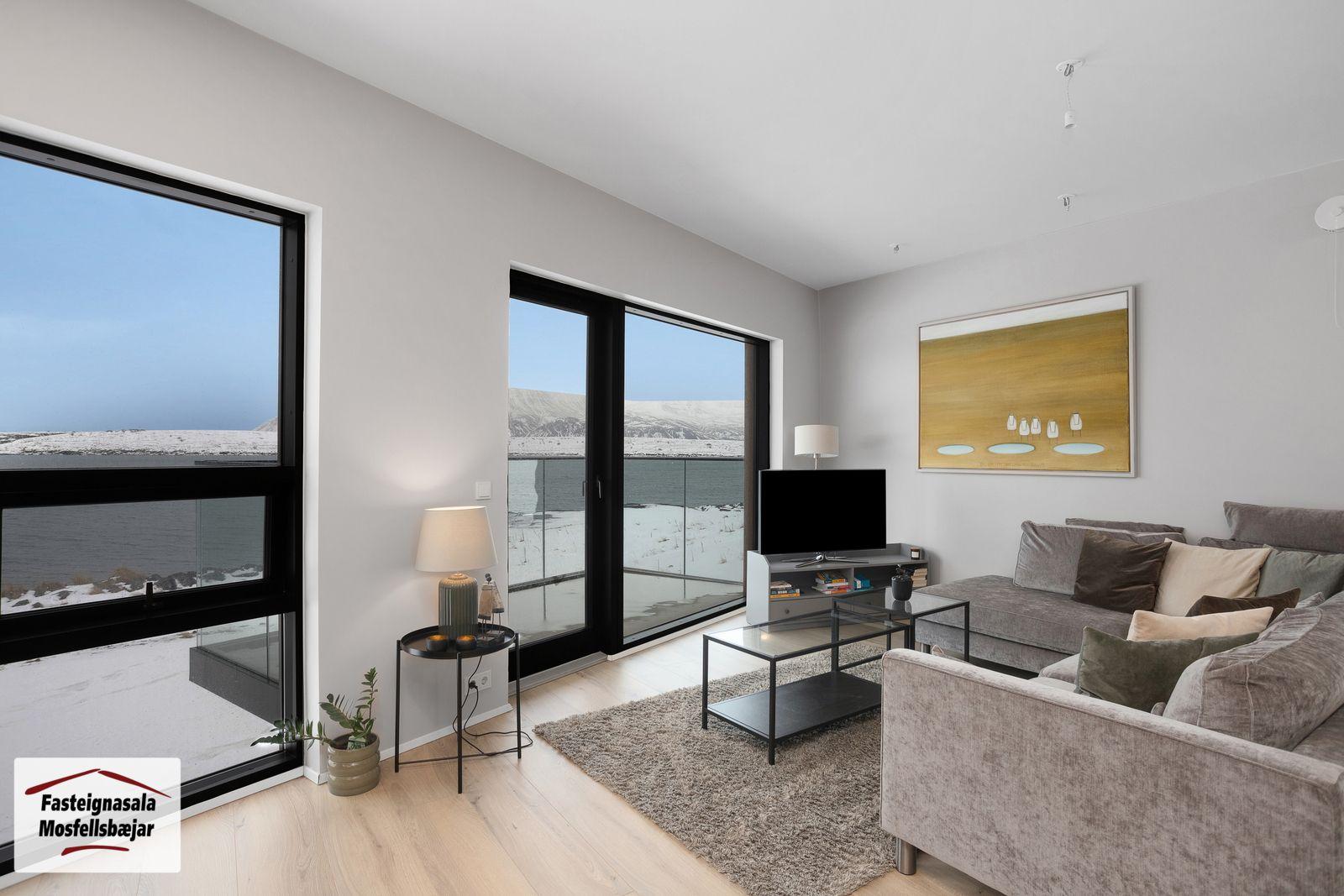 Fasteignasala Mosfellsbæjar kynnir: Falleg 95,5 m2 3ja herbergja útsýnisíbúð á 2. hæð ásamt bílastæði í lokaðri bílageymslu í nýlegu fjölbýlishúsi (byggt 2023). Eignin er skráð 95,5 m2 en þar af íbúð 83,2 m2 og geymsla 12,3 m2. Eignin skiptist í forstofugang, 2 svefnherbergi, baðherbergi, stofu og eldhús. Sérgeymsla og bílastæði í kjallara. Svalir með glæsilegu útsýni til sjávar. Fallega innréttingar, steinn á borðum í eldhúsi og á baðherbergi. Gólfhiti og aukin lofthæð. Stutt í alla helstu þjónustu, hvort sem það er í verslun, skóla, leikskóla eða íþróttamannvirki. Búið er að setja upp hleðsustöðvakerfi frá ON í bílakjallara.