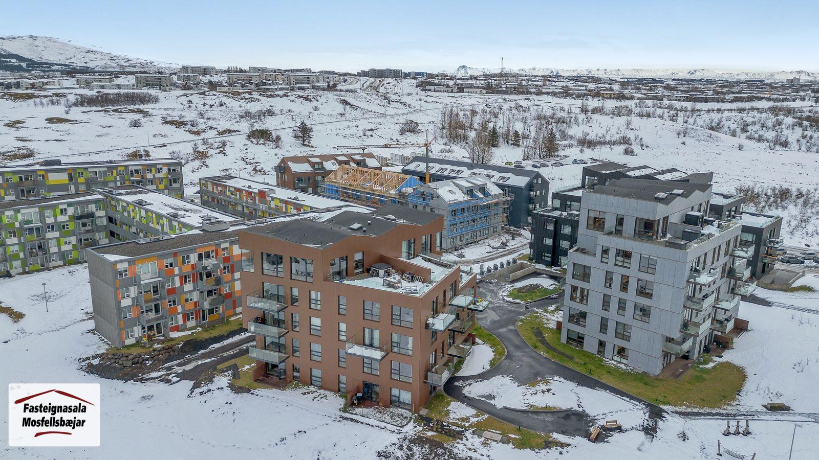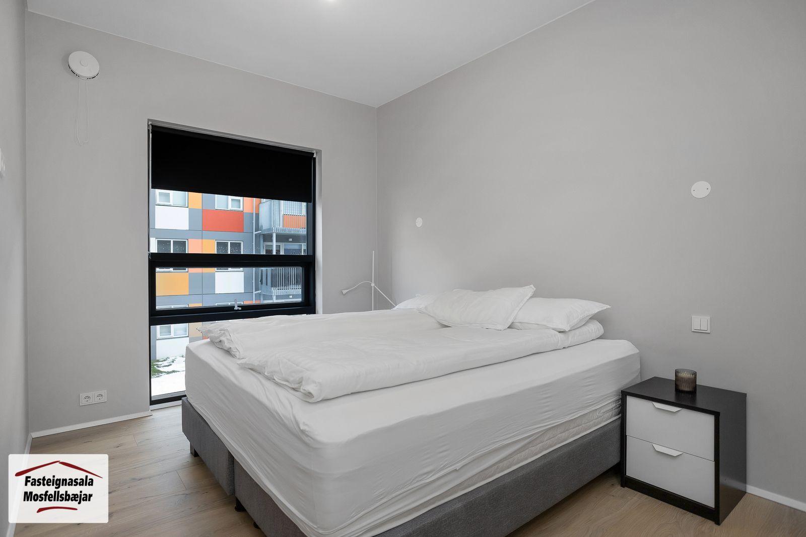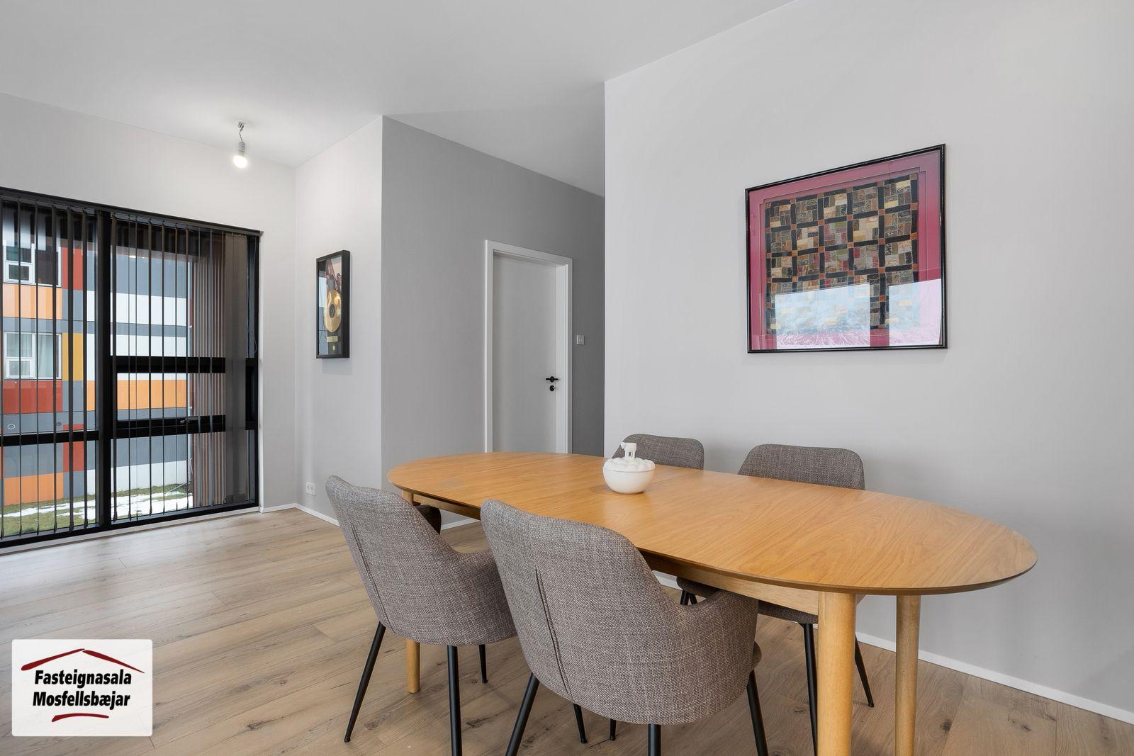 Fasteignasala Mosfellsbæjar kynnir: Falleg 95,5 m2 3ja herbergja útsýnisíbúð á 2. hæð ásamt bílastæði í lokaðri bílageymslu í nýlegu fjölbýlishúsi (byggt 2023). Eignin er skráð 95,5 m2 en þar af íbúð 83,2 m2 og geymsla 12,3 m2. Eignin skiptist í forstofugang, 2 svefnherbergi, baðherbergi, stofu og eldhús. Sérgeymsla og bílastæði í kjallara. Svalir með glæsilegu útsýni til sjávar. Fallega innréttingar, steinn á borðum í eldhúsi og á baðherbergi. Gólfhiti og aukin lofthæð. Stutt í alla helstu þjónustu, hvort sem það er í verslun, skóla, leikskóla eða íþróttamannvirki. Búið er að setja upp hleðsustöðvakerfi frá ON í bílakjallara.