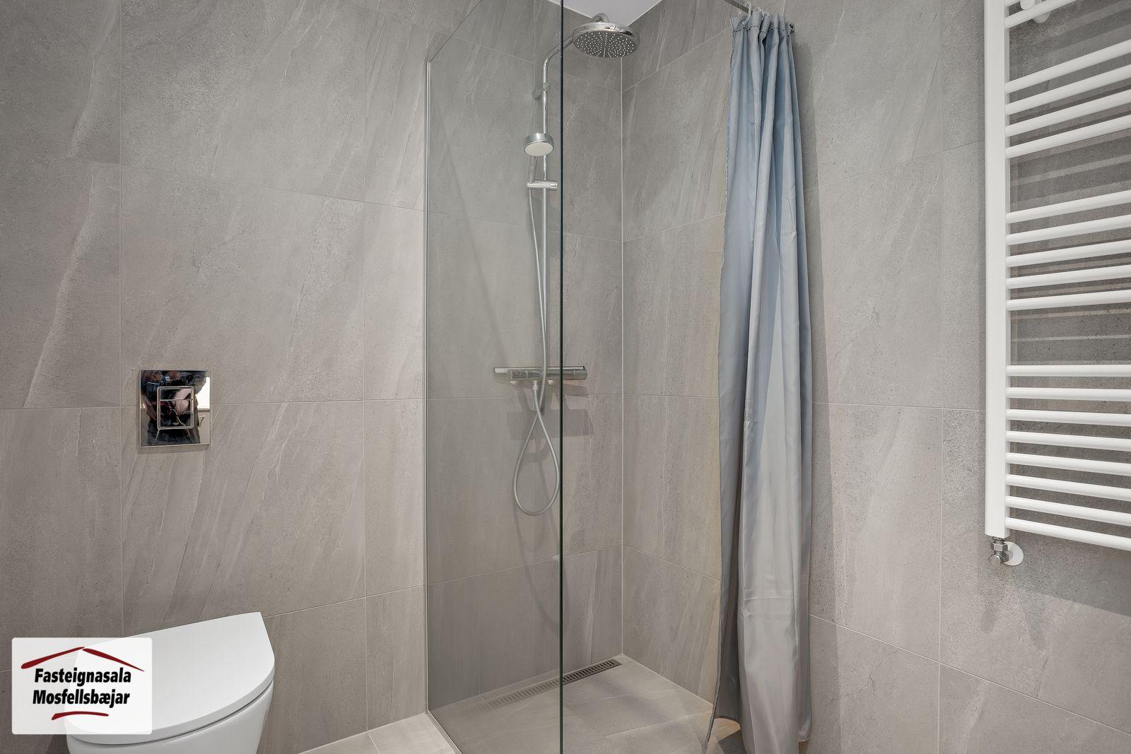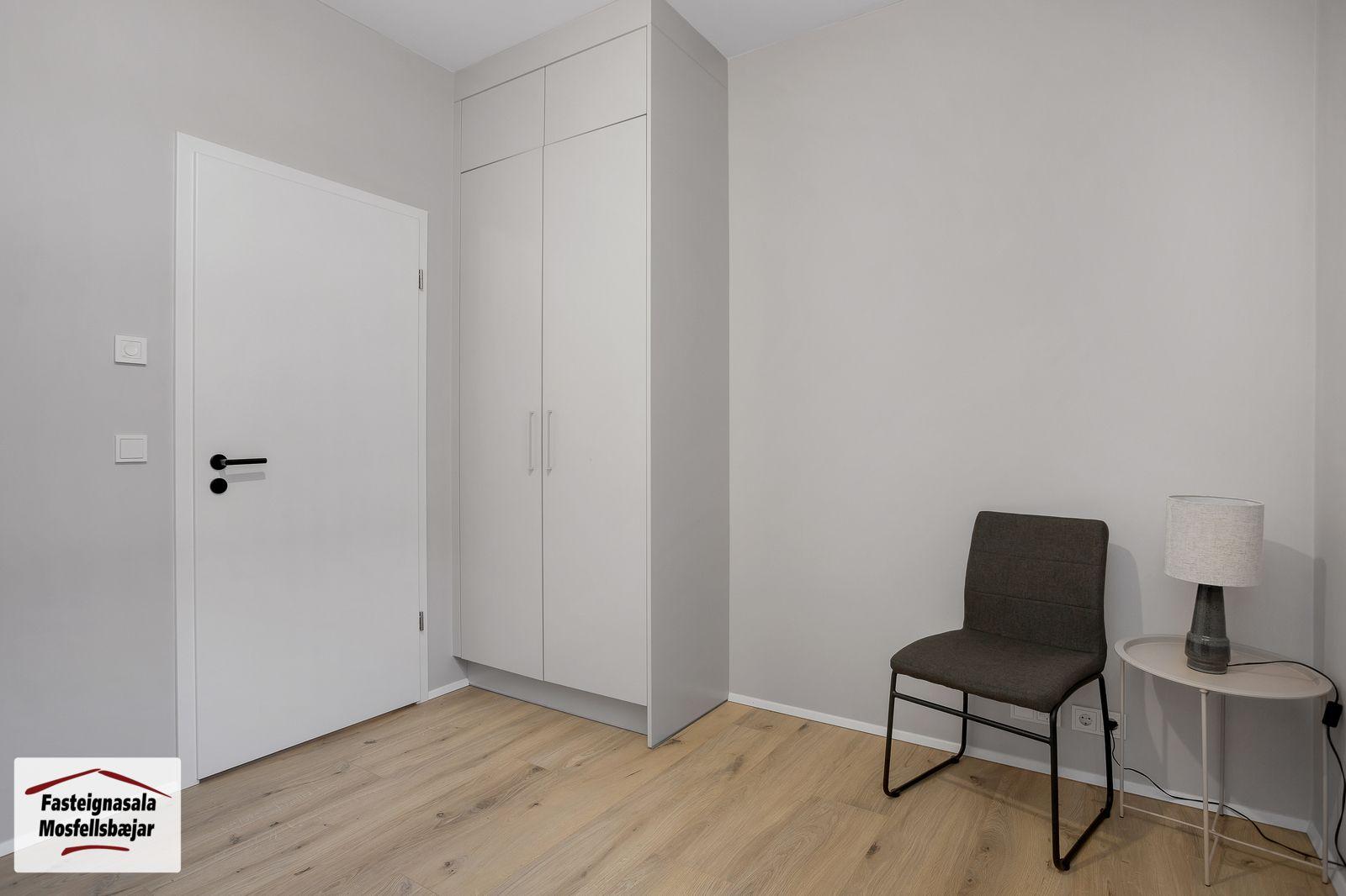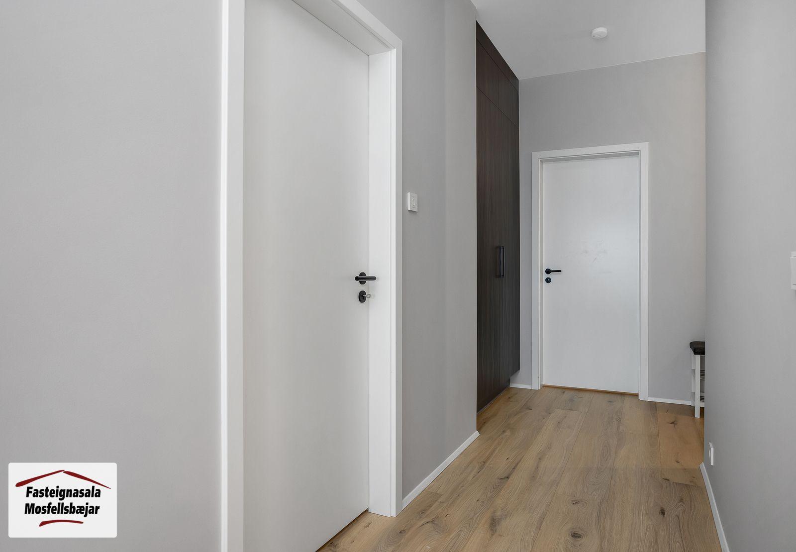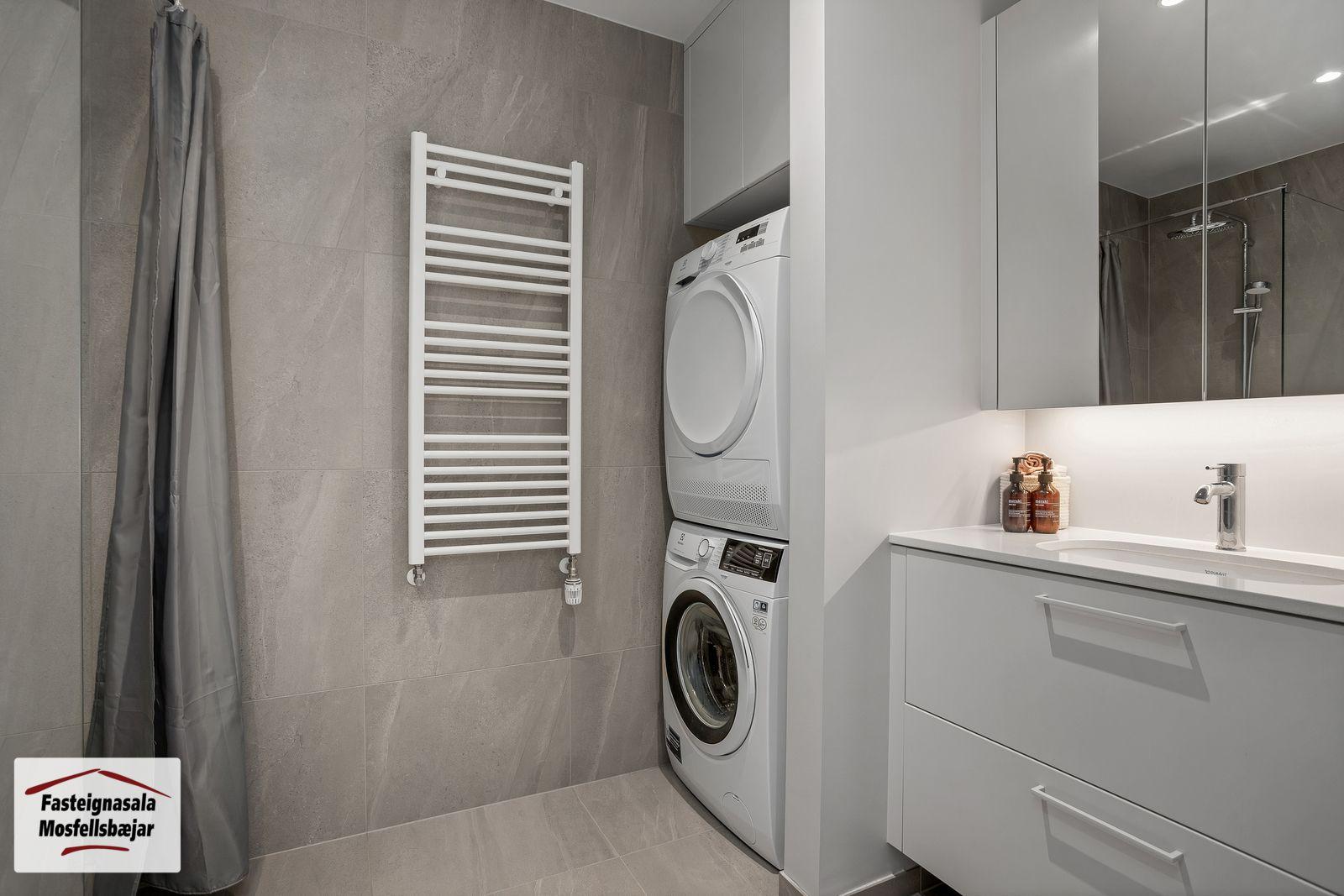 Fasteignasala Mosfellsbæjar kynnir: Falleg 95,5 m2 3ja herbergja útsýnisíbúð á 2. hæð ásamt bílastæði í lokaðri bílageymslu í nýlegu fjölbýlishúsi (byggt 2023). Eignin er skráð 95,5 m2 en þar af íbúð 83,2 m2 og geymsla 12,3 m2. Eignin skiptist í forstofugang, 2 svefnherbergi, baðherbergi, stofu og eldhús. Sérgeymsla og bílastæði í kjallara. Svalir með glæsilegu útsýni til sjávar. Fallega innréttingar, steinn á borðum í eldhúsi og á baðherbergi. Gólfhiti og aukin lofthæð. Stutt í alla helstu þjónustu, hvort sem það er í verslun, skóla, leikskóla eða íþróttamannvirki. Búið er að setja upp hleðsustöðvakerfi frá ON í bílakjallara.